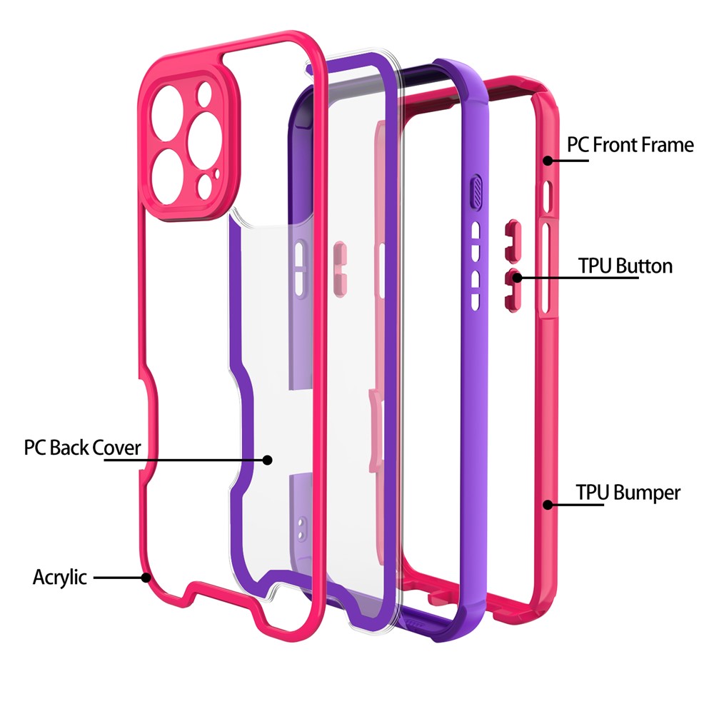 - 4-in-1 Detachable Design Features a modular structure including a PC front frame, acrylic back panel, TPU bumper, and reinforced TPU buttons for easy installation and full-body protection