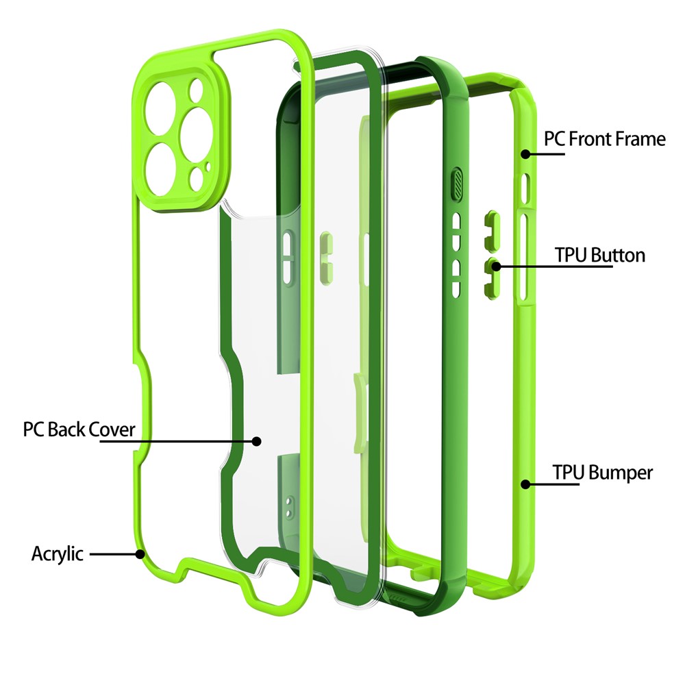 - 4-in-1 Detachable Design Features a modular structure including a PC front frame, acrylic back panel, TPU bumper, and reinforced TPU buttons for easy installation and full-body protection