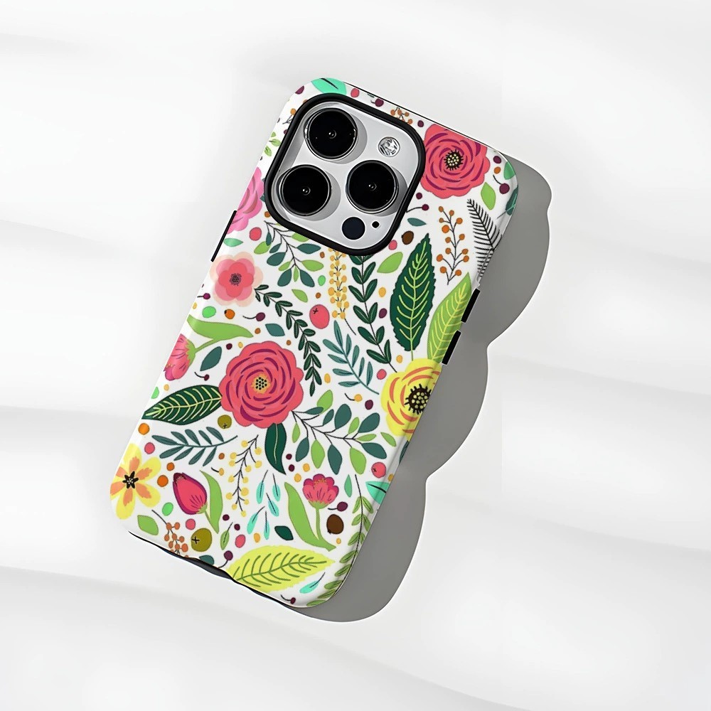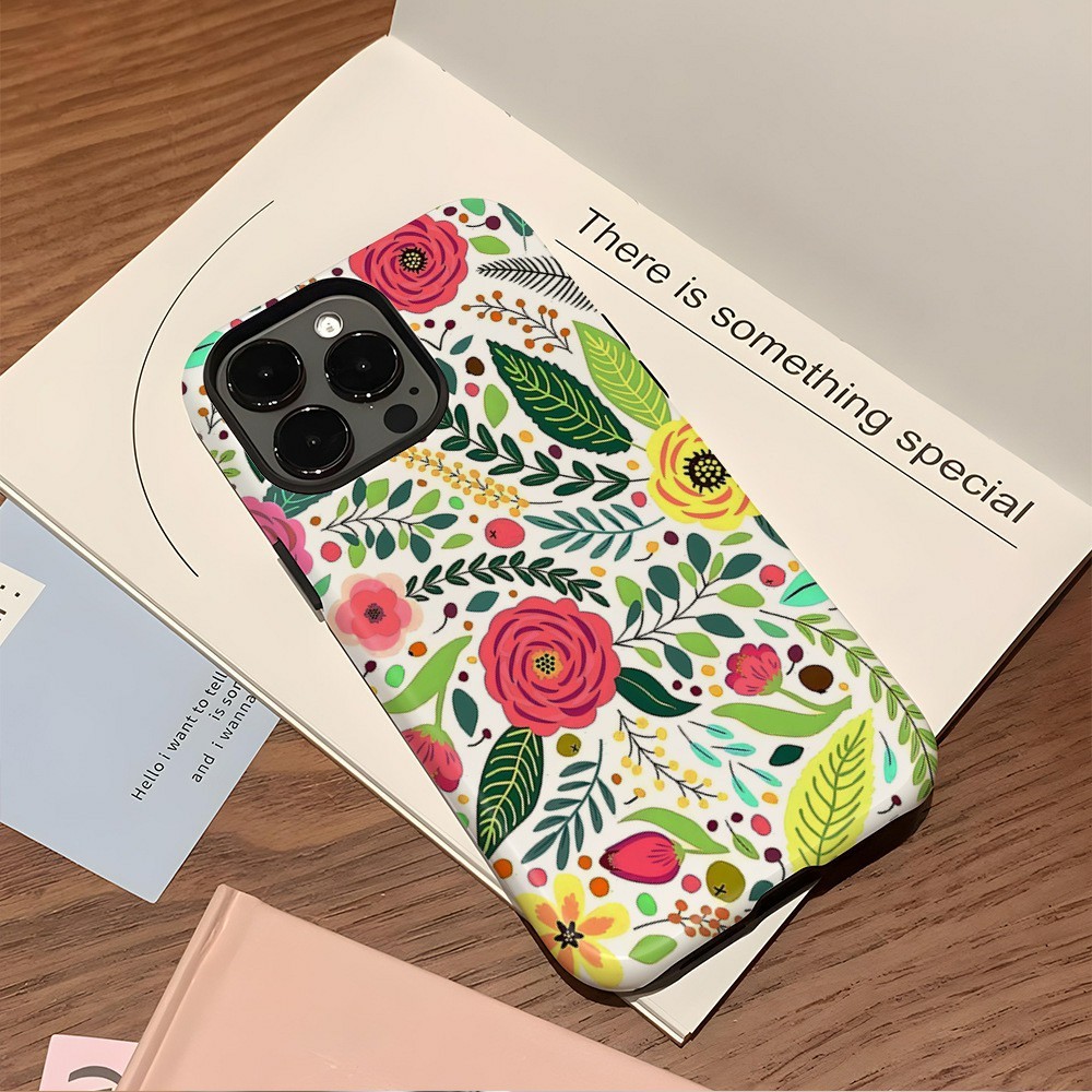 • For iPhone 16 Pro Max Case Double Layer TPU + PC Heat Transfer Floral Design Glossy Phone Cover - Colorful Flower