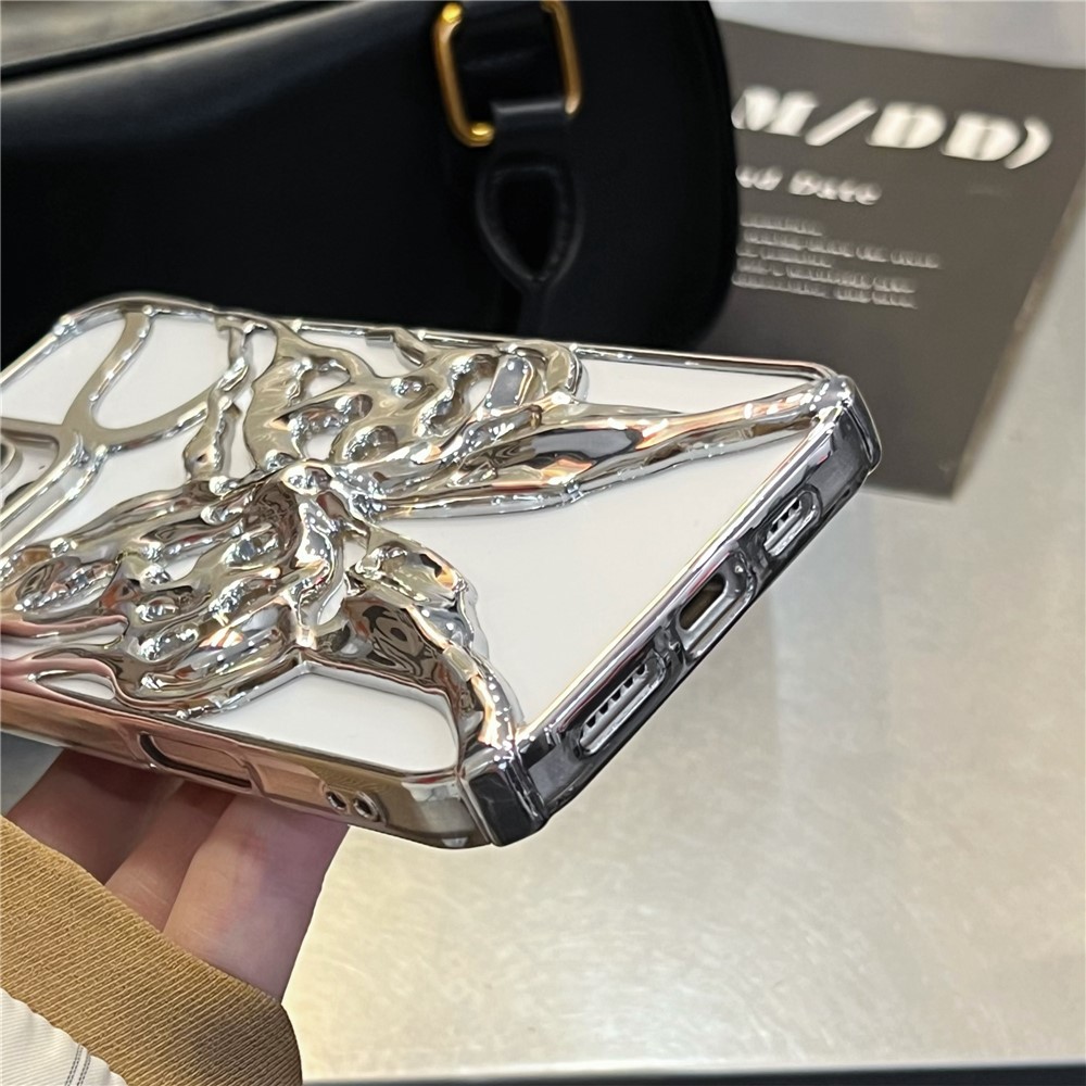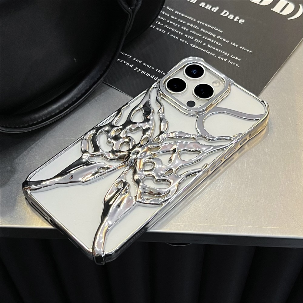 For iPhone 16 Pro Max Case Electroplated Hollow Butterfly Pattern Creative Design TPU Phone Cover – Silver