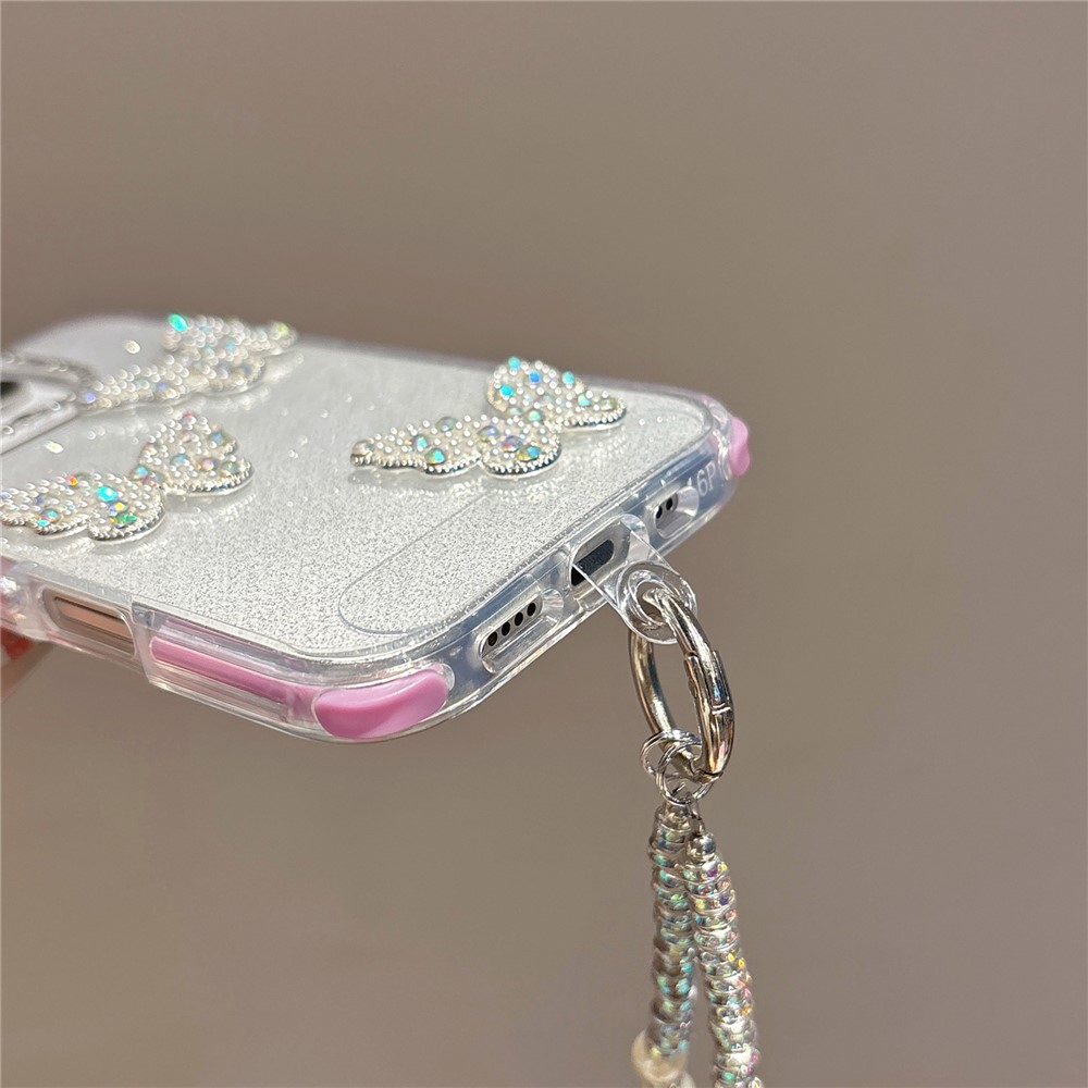 - Butterfly & Diamond Accents Adorned with jeweled butterflies and a rhinestone decor camera ring for a glamorous touch