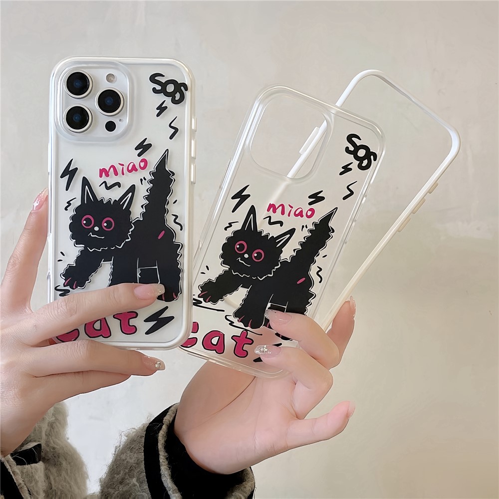 For iPhone 16 Pro Max Case IMD Cartoon Cat Design TPU Shockproof Phone Cover