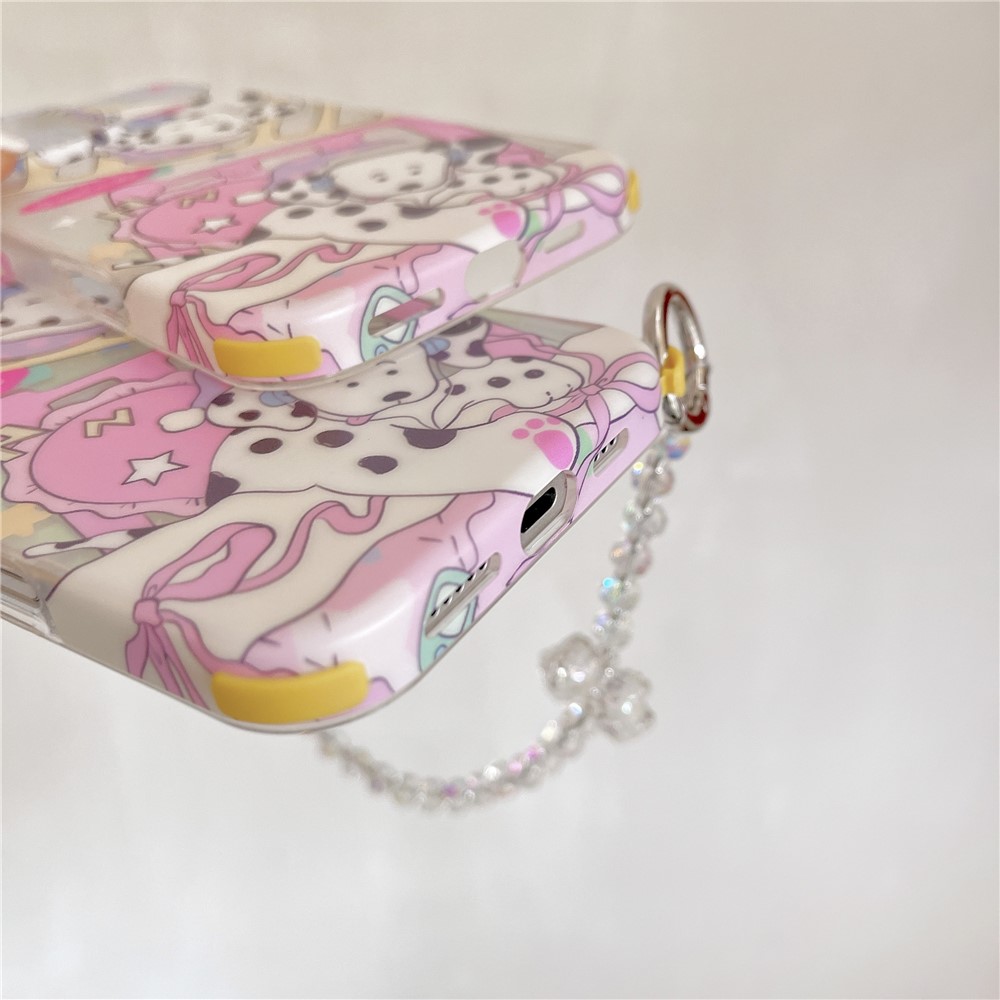 For iPhone 16 Pro Max Case IMD Cartoon Dalmatian TPU Phone Cover with Beaded Strap