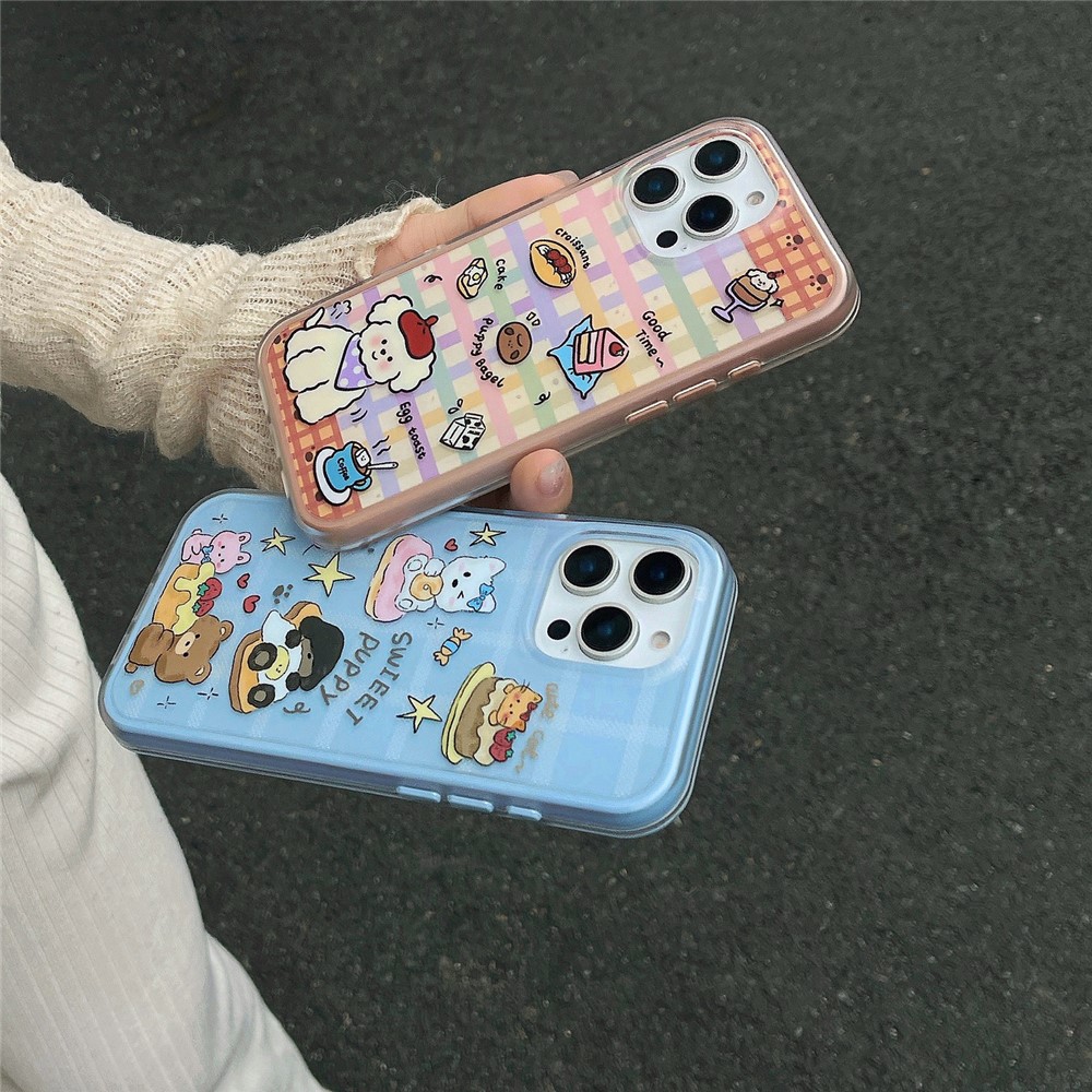 - Cute Cartoon Design Features an adorable puppy-themed cartoon illustration with cat, donut, bear, star, and sweet treat for a playful, charming look