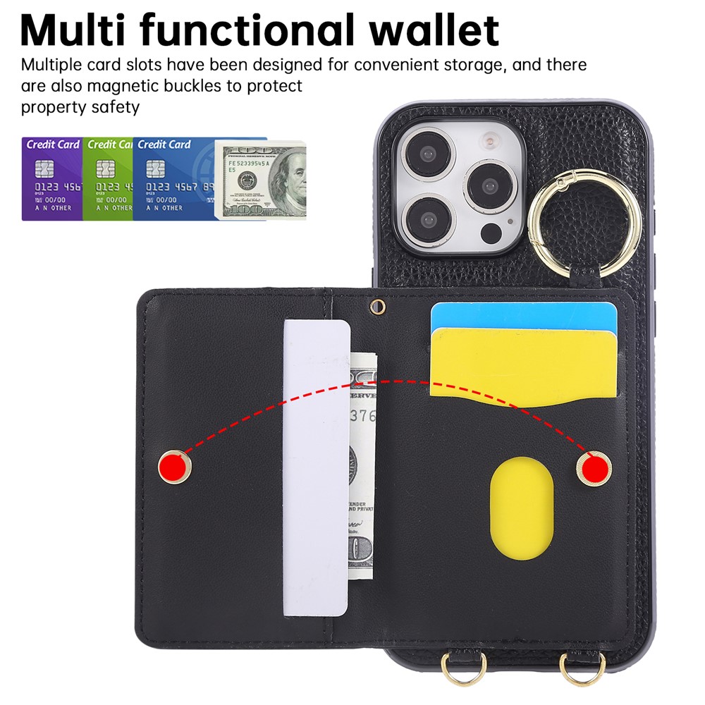 - Card Holder Design Features a multi-card slot secured by a magnetic buckle for convenient storage, providing organized storage for cards, cash, and coins