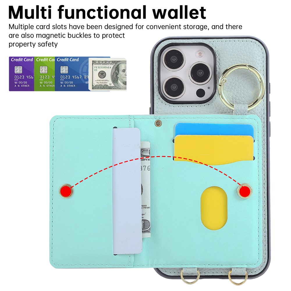 - Card Holder Design Features a multi-card slot secured by a magnetic buckle for convenient storage, providing organized storage for cards, cash, and coins