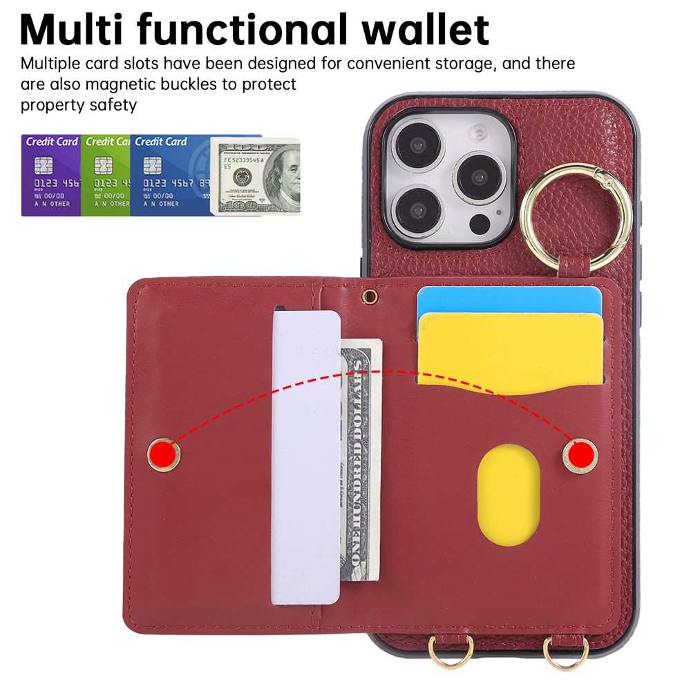 - Card Holder Design Features a multi-card slot secured by a magnetic buckle for convenient storage, providing organized storage for cards, cash, and coins