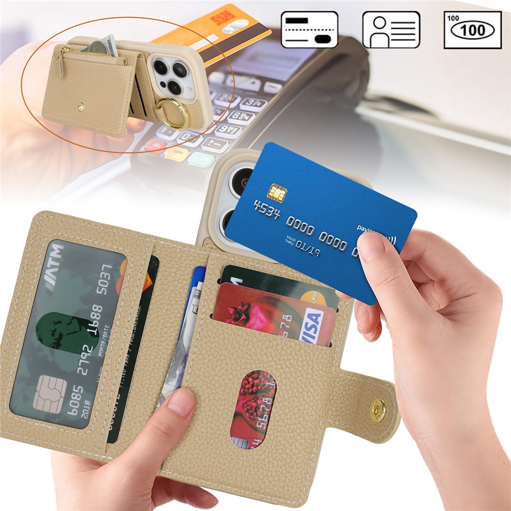 - Zipper Wallet with Multiple Card Slots Designed with a practical zipper wallet section and multiple card slots secured by a snap-button flap, making it easy to store your ID, credit cards, cash, or transit passes securely on the go