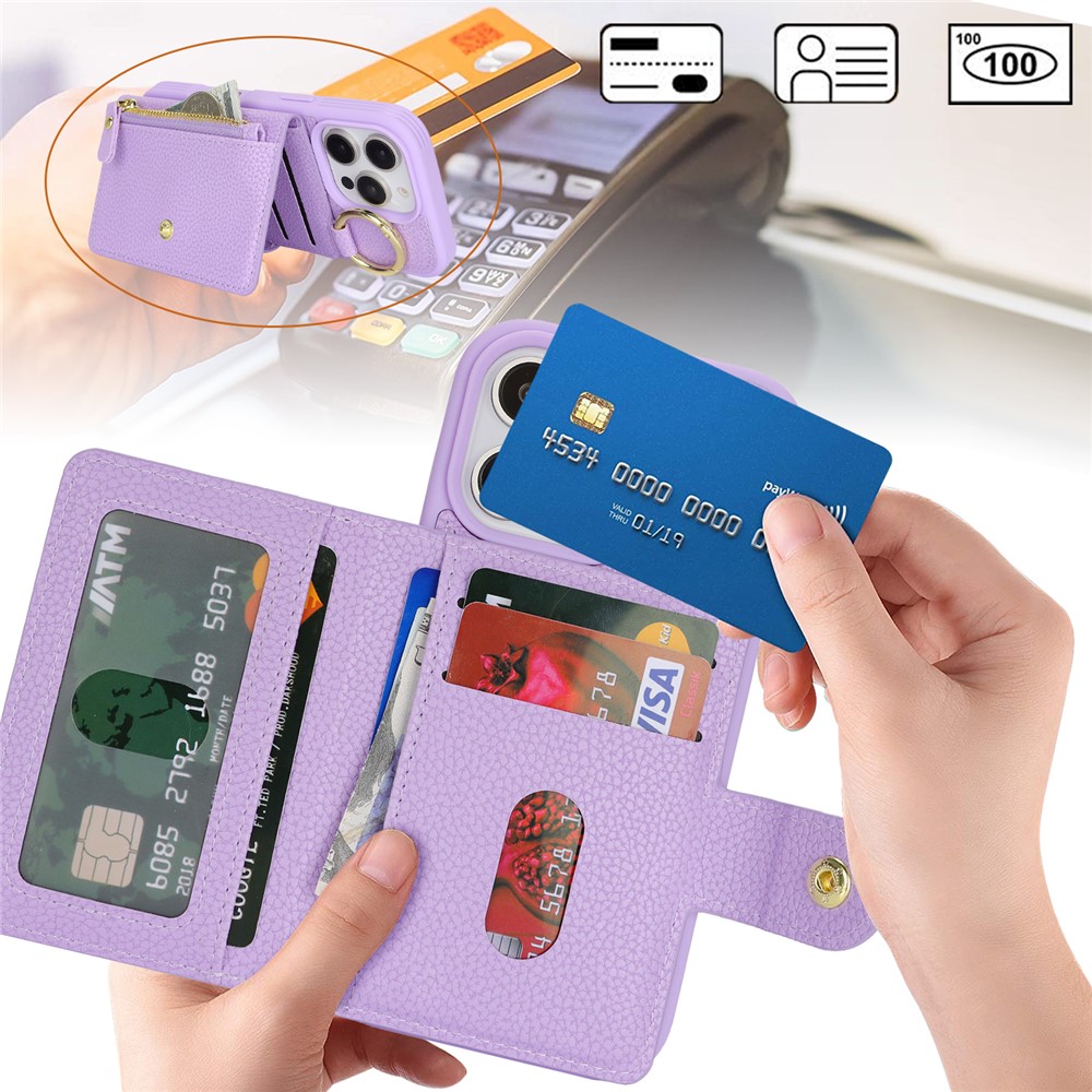 - Zipper Wallet with Multiple Card Slots Designed with a practical zipper wallet section and multiple card slots secured by a snap-button flap, making it easy to store your ID, credit cards, cash, or transit passes securely on the go