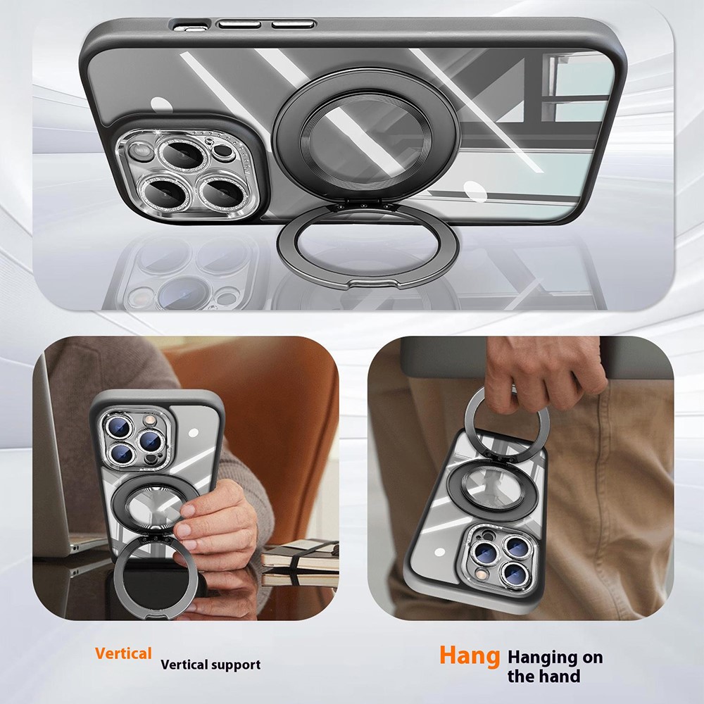 - 360° Rotating Ring Kickstand Integrated metal ring kickstand rotates freely. Offers a comfortable grip and supports hands-free viewing in both portrait and landscape modes