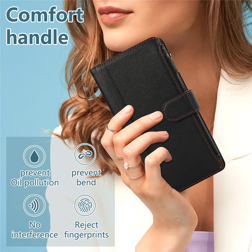 - Zipper Wallet Design Side zipper pocket allows secure storage of coins, bills, or cards, combining fashion and function