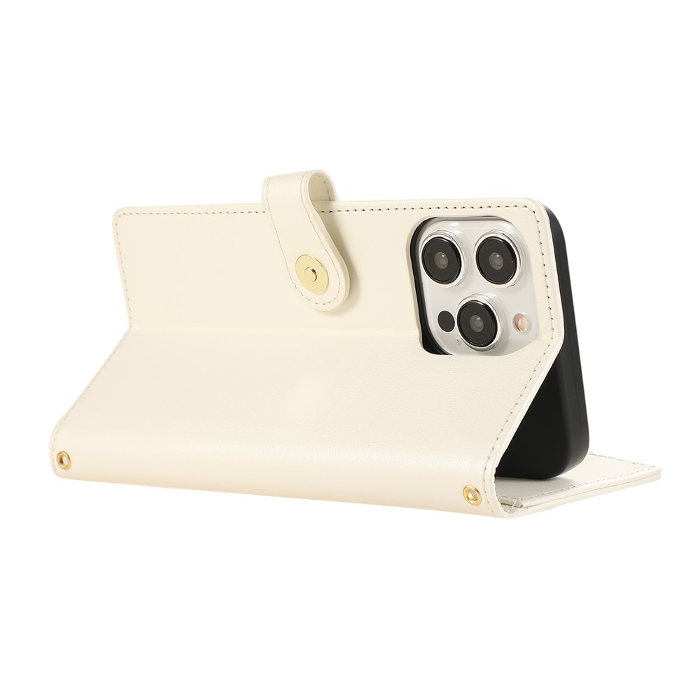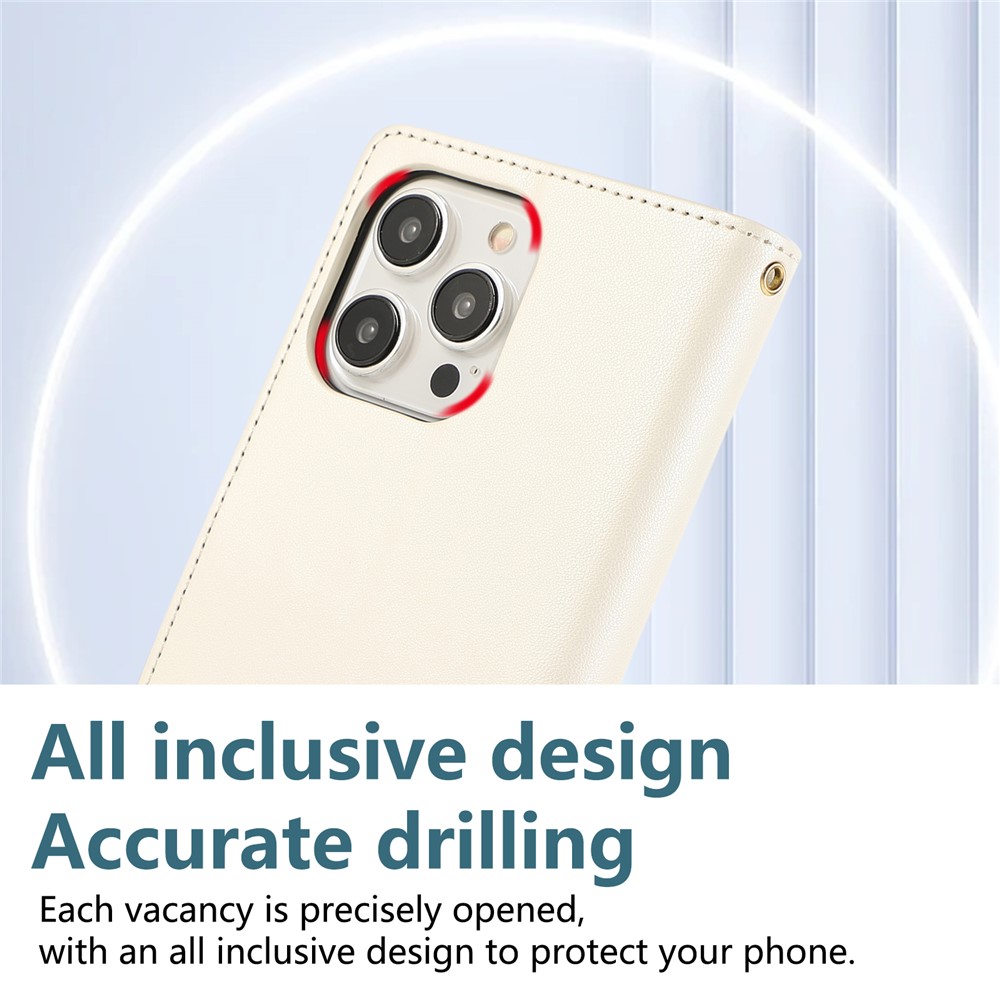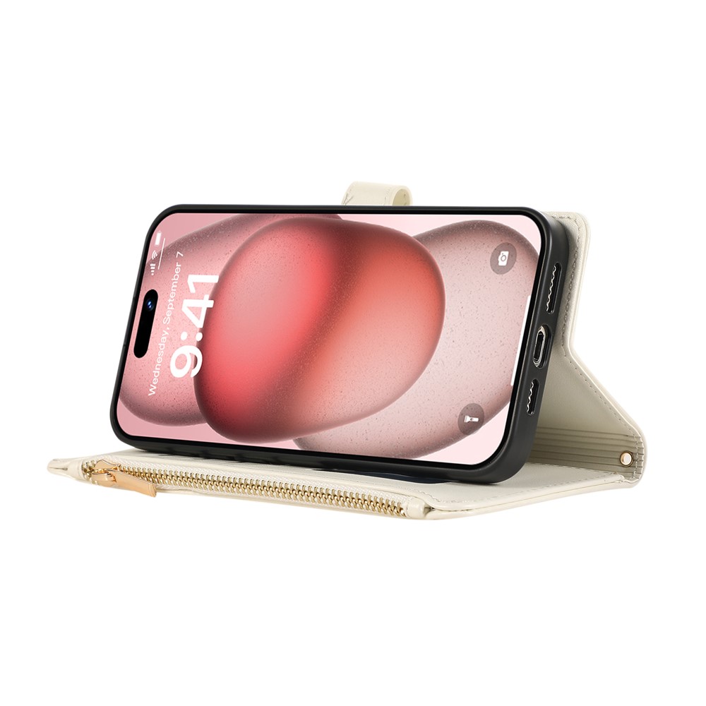 For iPhone 16 Pro Max Case Multi Card Slots Zipper Rhombus Leather Phone Cover with Wrist Strap – Beige