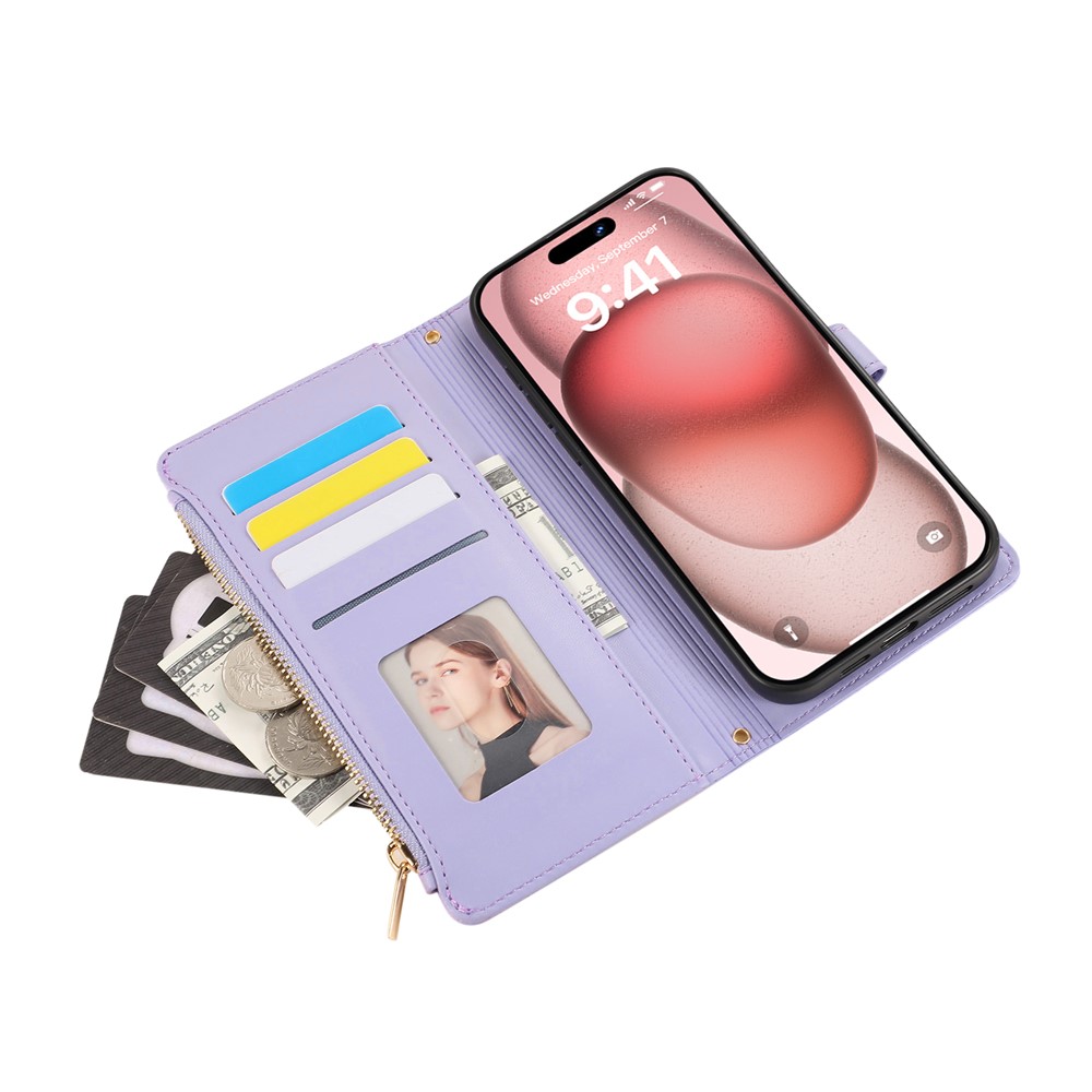 - Zipper Wallet Design Side zipper pocket allows secure storage of coins, bills, or cards, combining fashion and function