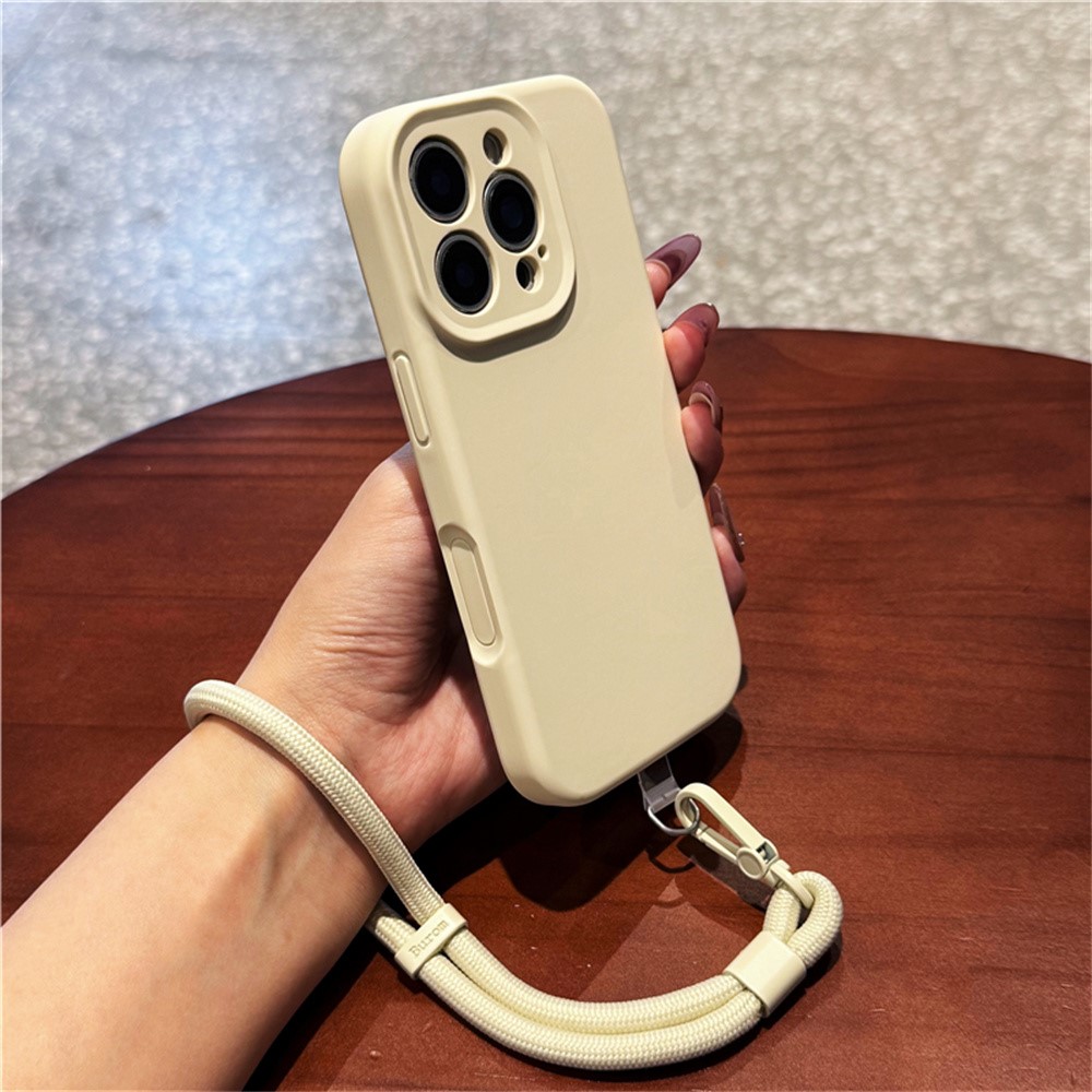 For iPhone 16 Pro Max Case Precise Cutouts Liquid Silicone + PC Phone Cover with Wrist Strap – Antique White