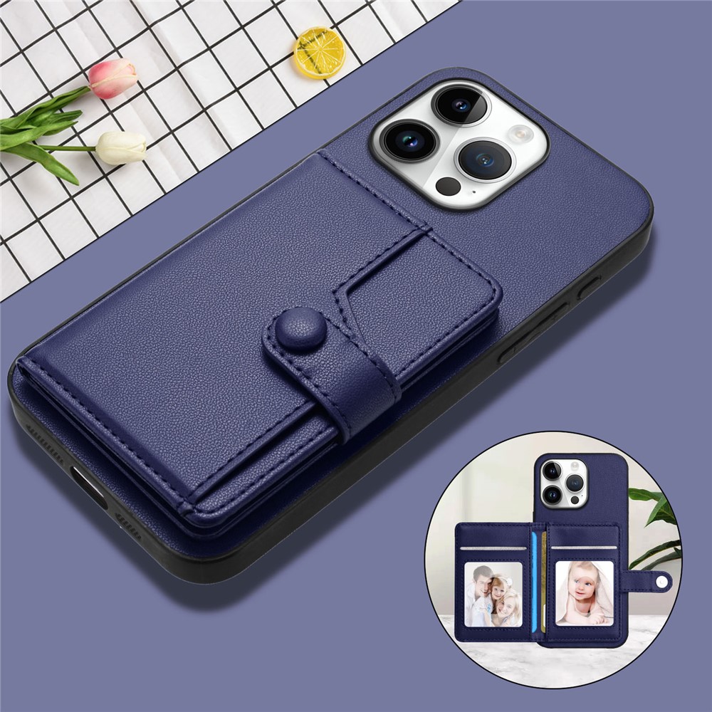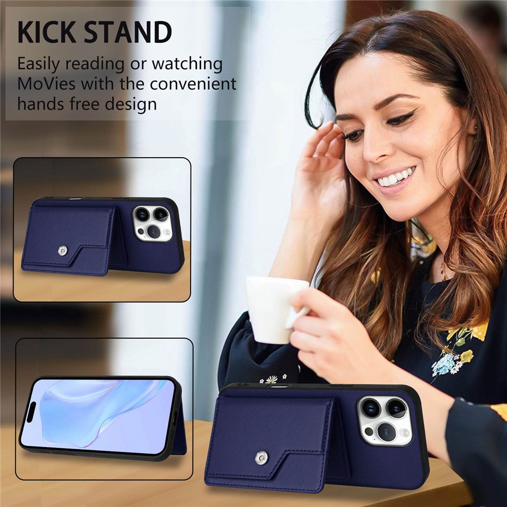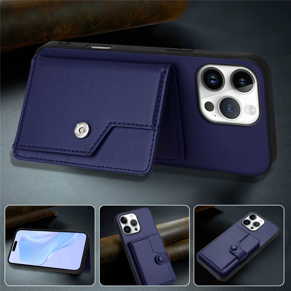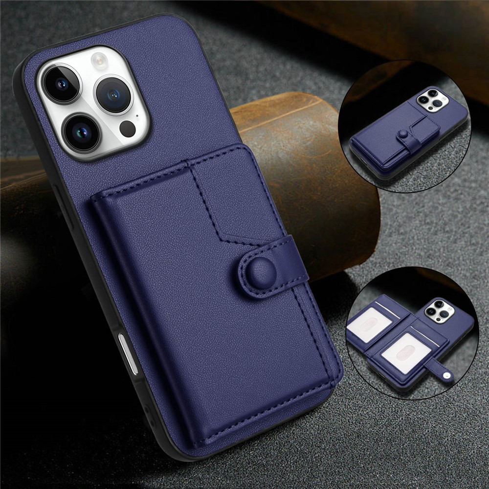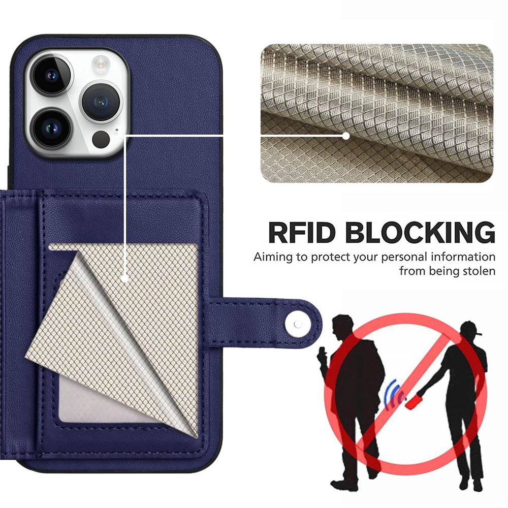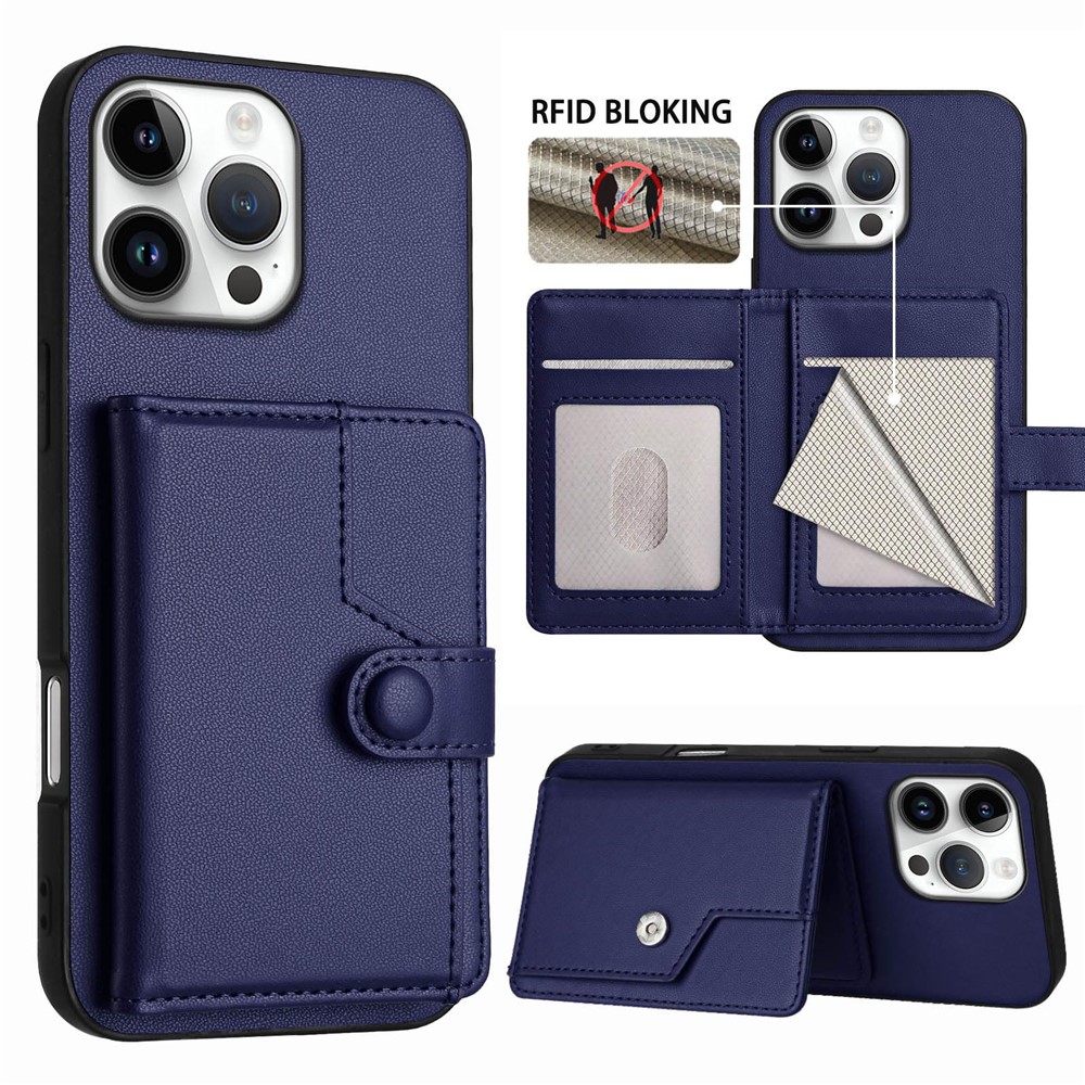 For iPhone 16 Pro Max Case RFID Blocking Card Holder Kickstand TPU + PU Leather Phone Back Cover – Blue