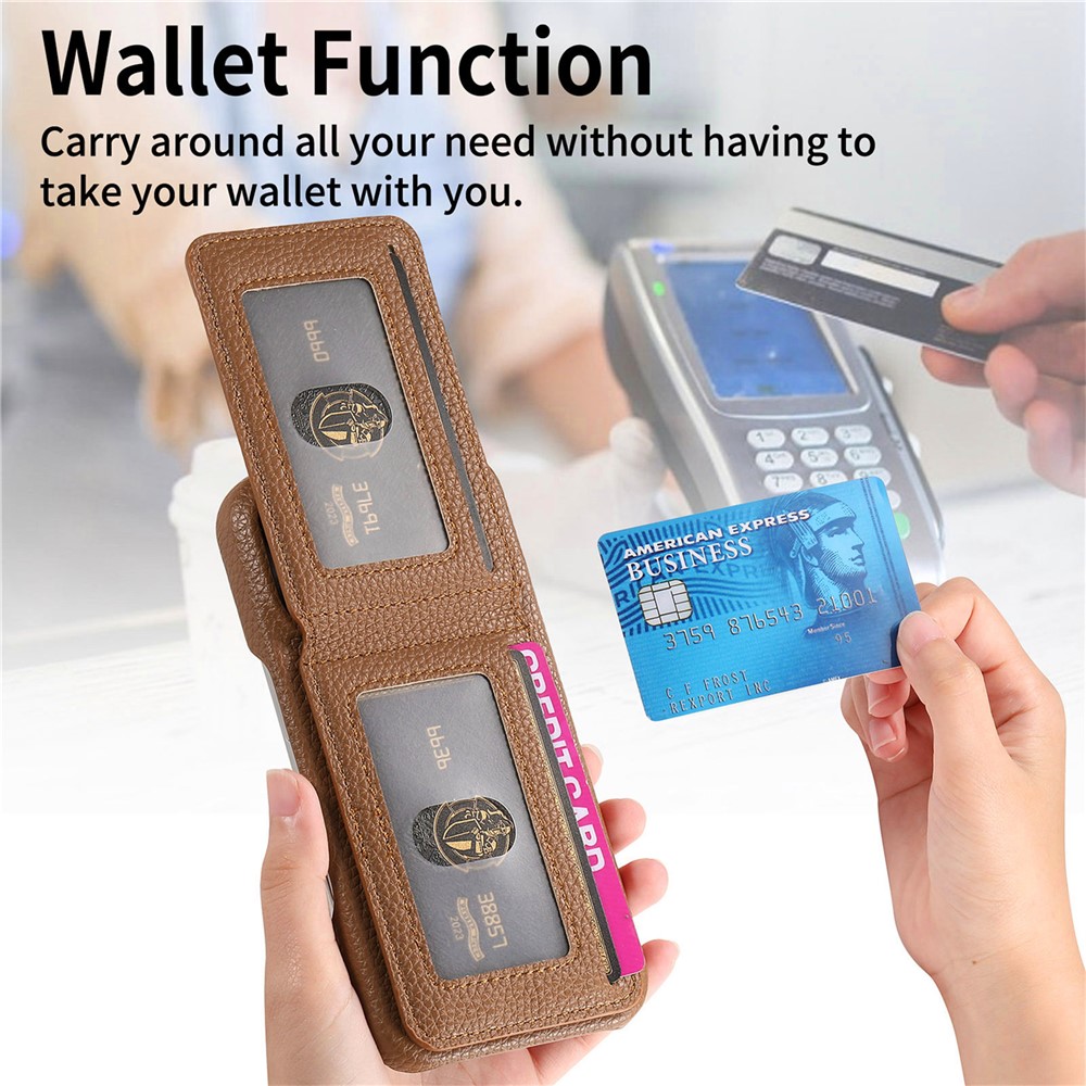 - Hidden Card Slots Features two concealed vertical flip compartments with card windows, ideal for storing ID and credit cards securely