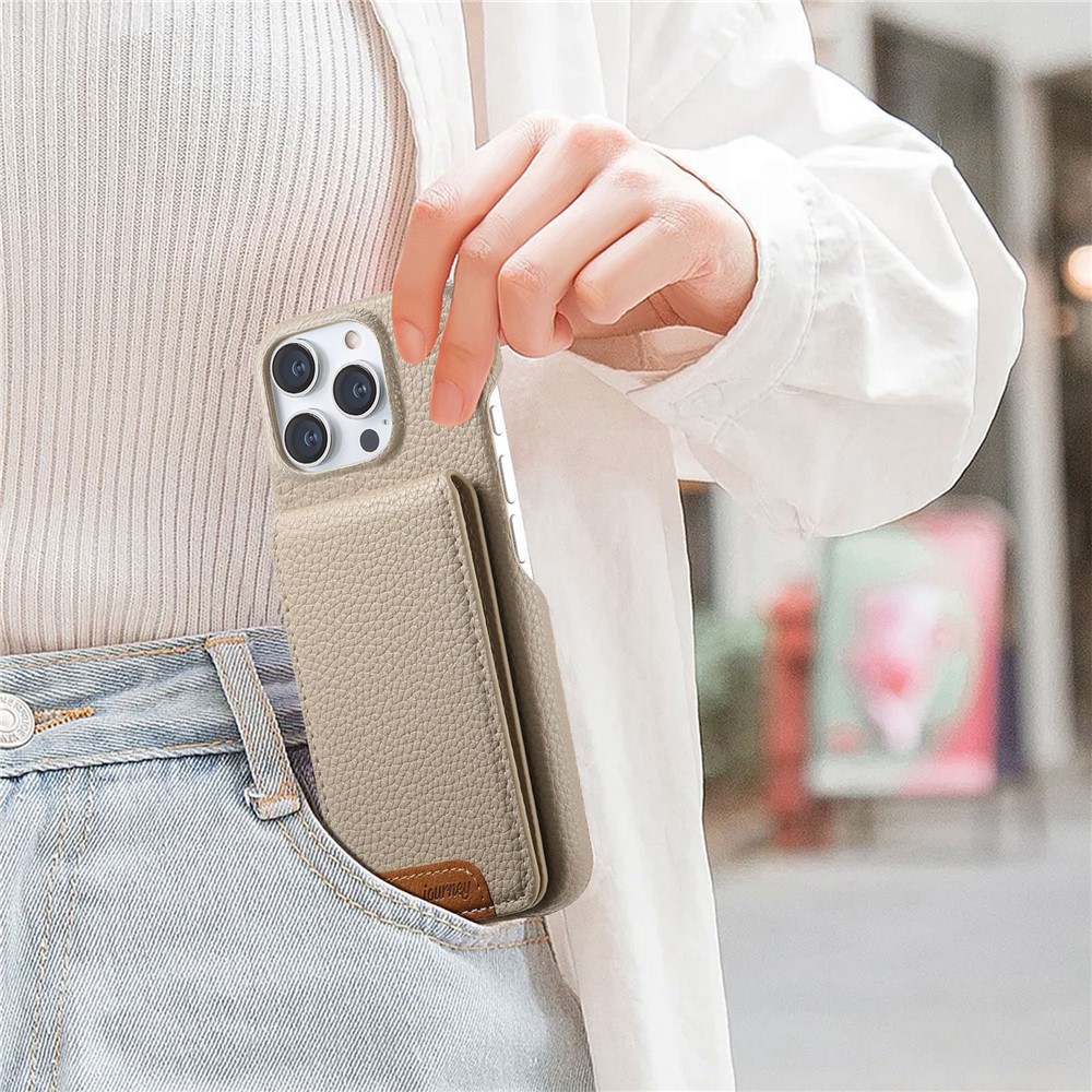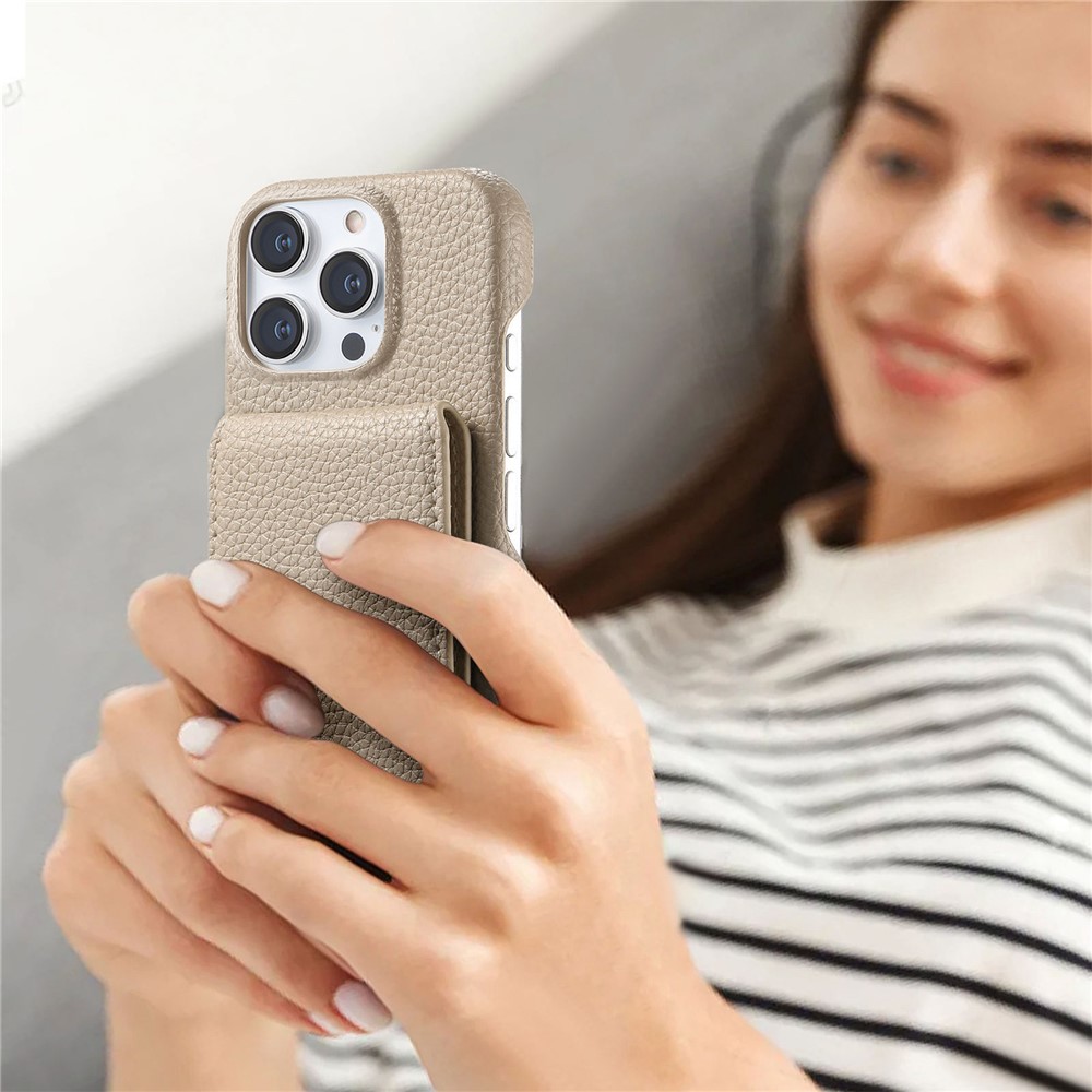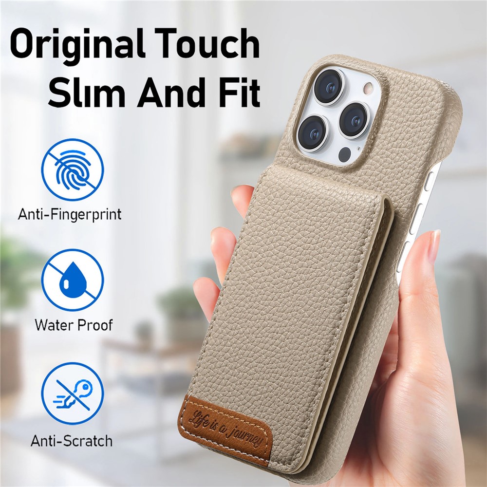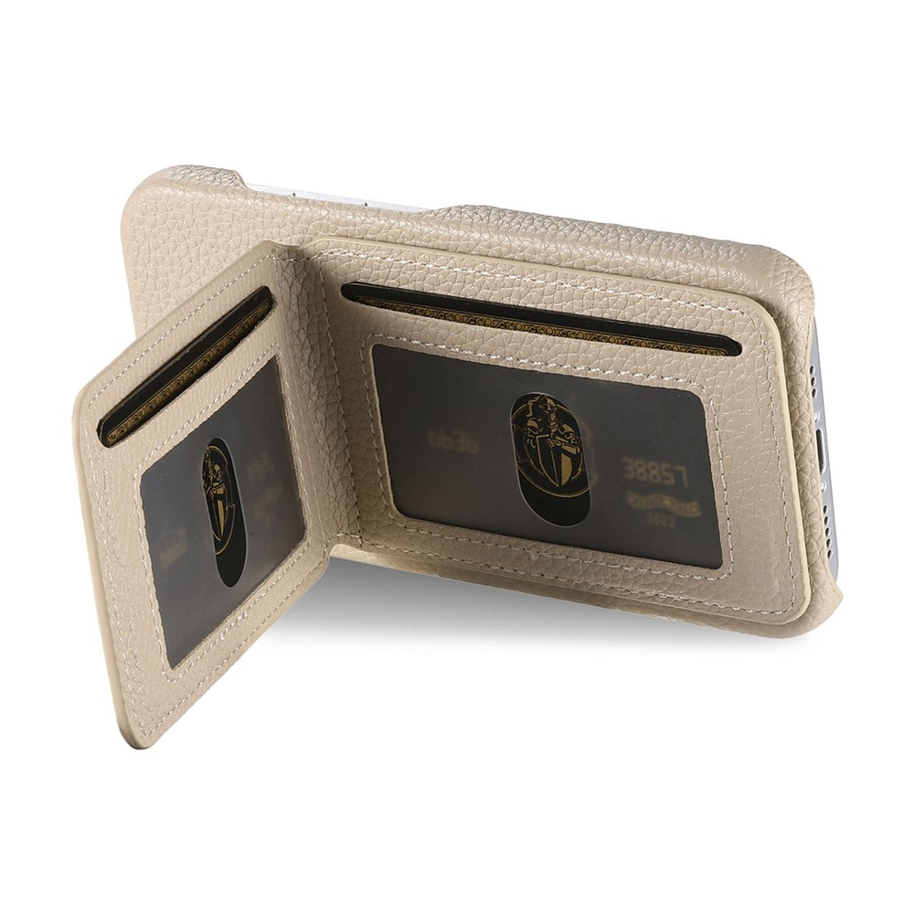 - Hidden Card Slots Features two concealed vertical flip compartments with card windows, ideal for storing ID and credit cards securely