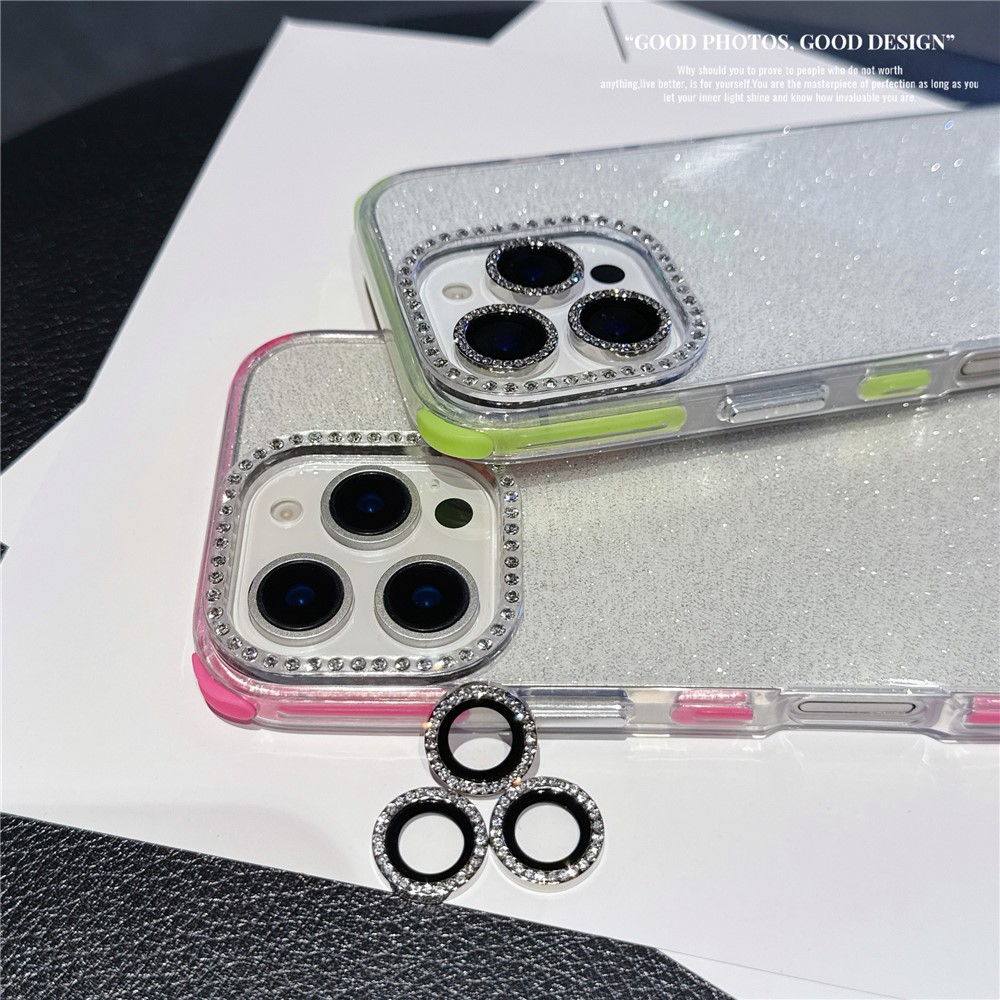 - Rhinestone Camera Ring Decorated with full rhinestones around the camera frame, adding a touch of luxury and enhancing lens protection