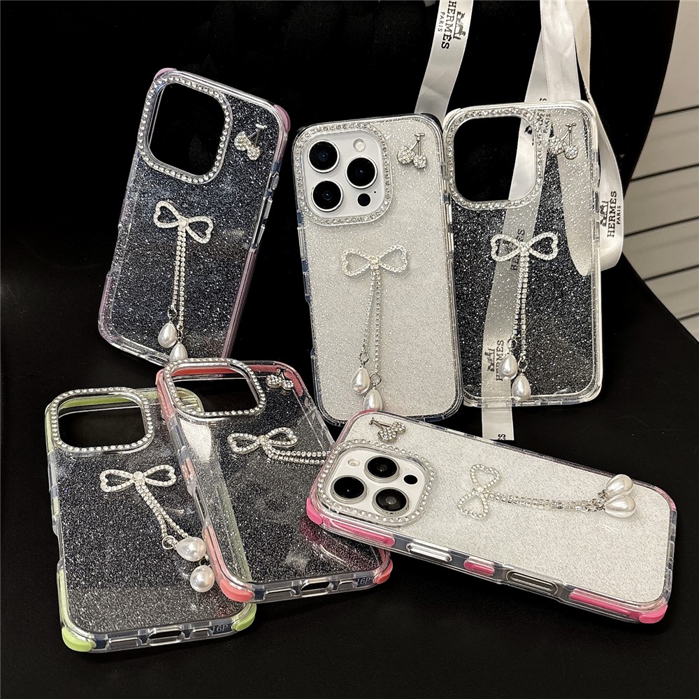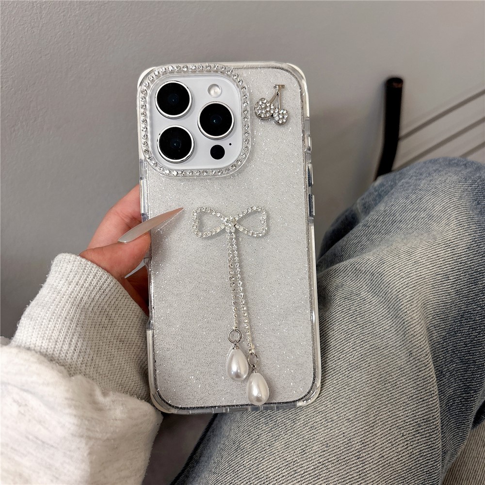 - Bow & Pearl Tassel Charm Decorated with a rhinestone cherry, bow and hanging pearl tassels for an elegant, feminine touch