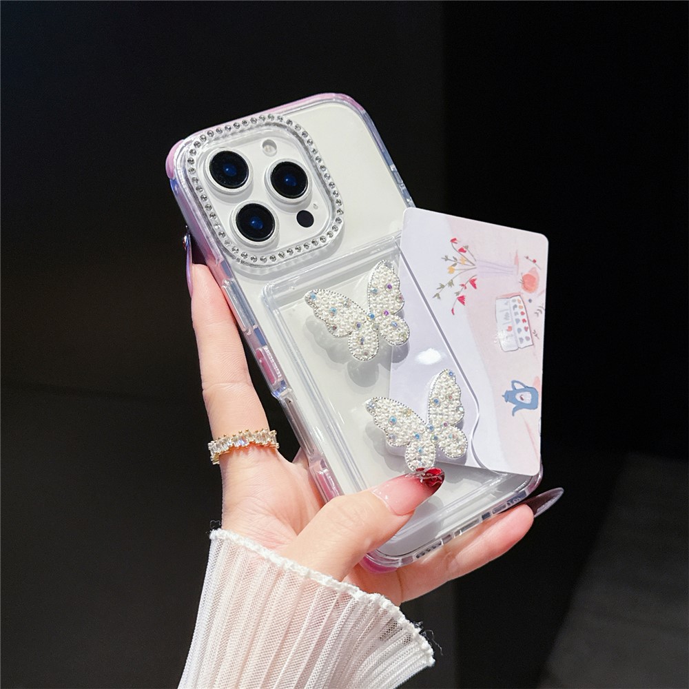 - Butterflies Card Holder The acrylic card holder compartment allows you to carry up to 2 cards, photos, or small cash, eliminating the need for a separate wallet