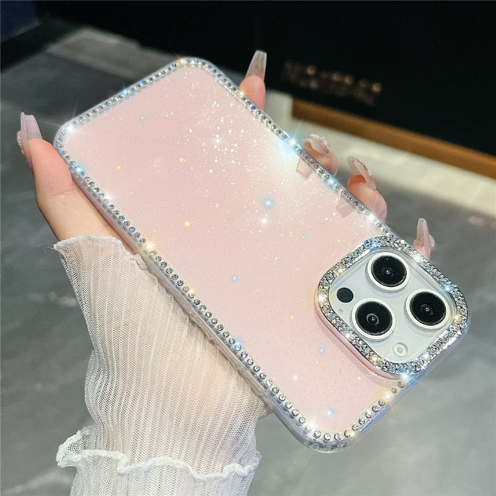 - Sparkling Design Features rhinestone detailing around the frame and camera, complemented by a glitter-infused back for a stylish, eye-catching look
