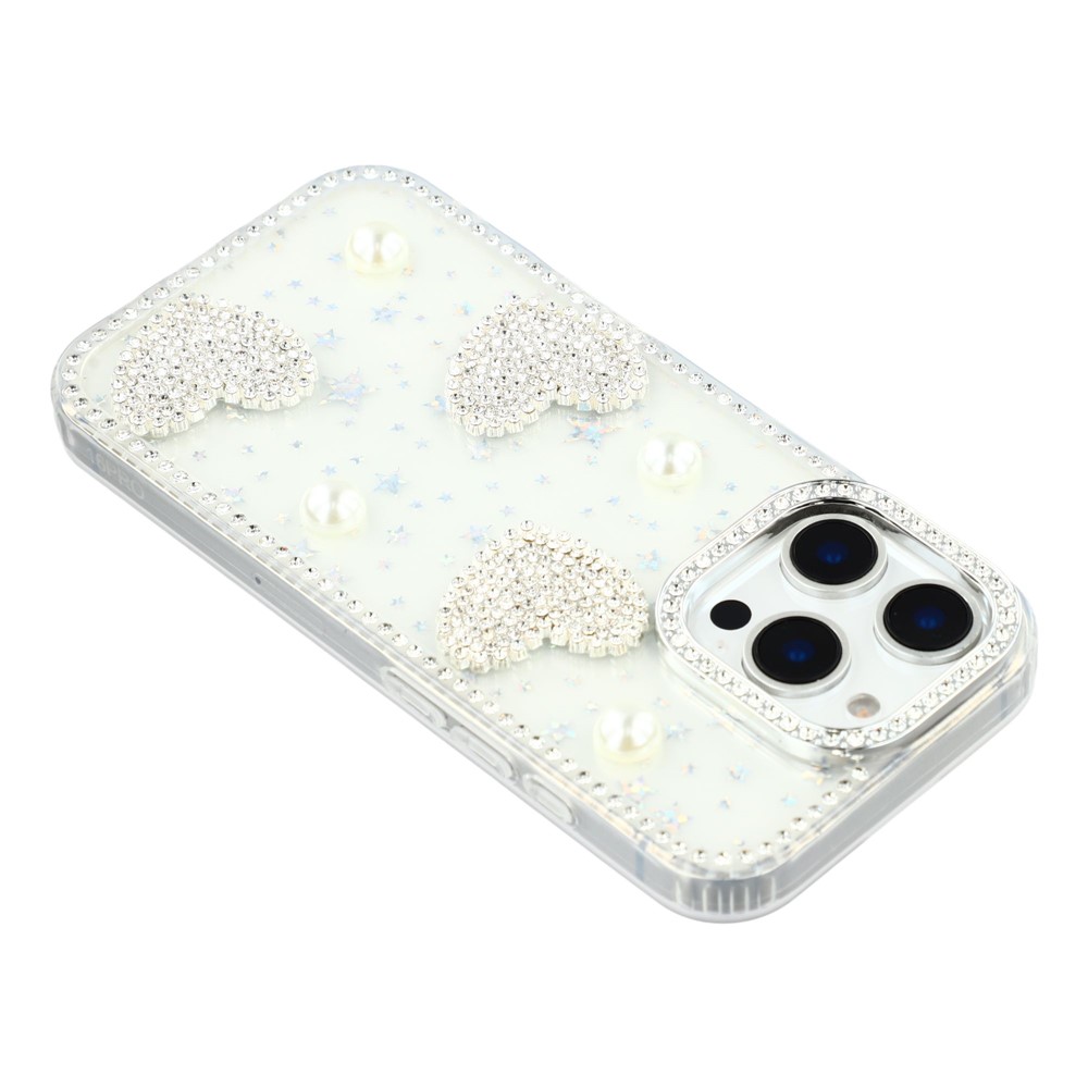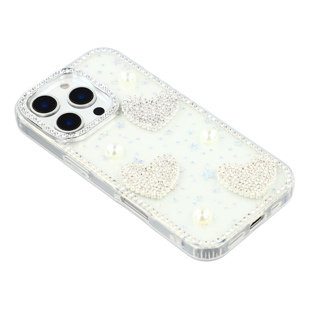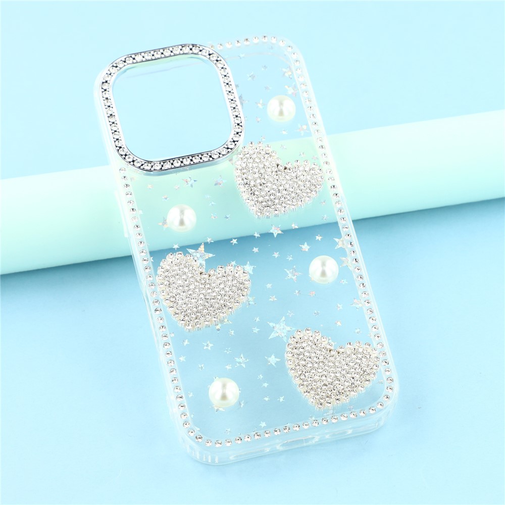 - Sparkling Design Features rhinestone detailing around the frame and camera, complemented by a pearl love decor back for a stylish, eye-catching look