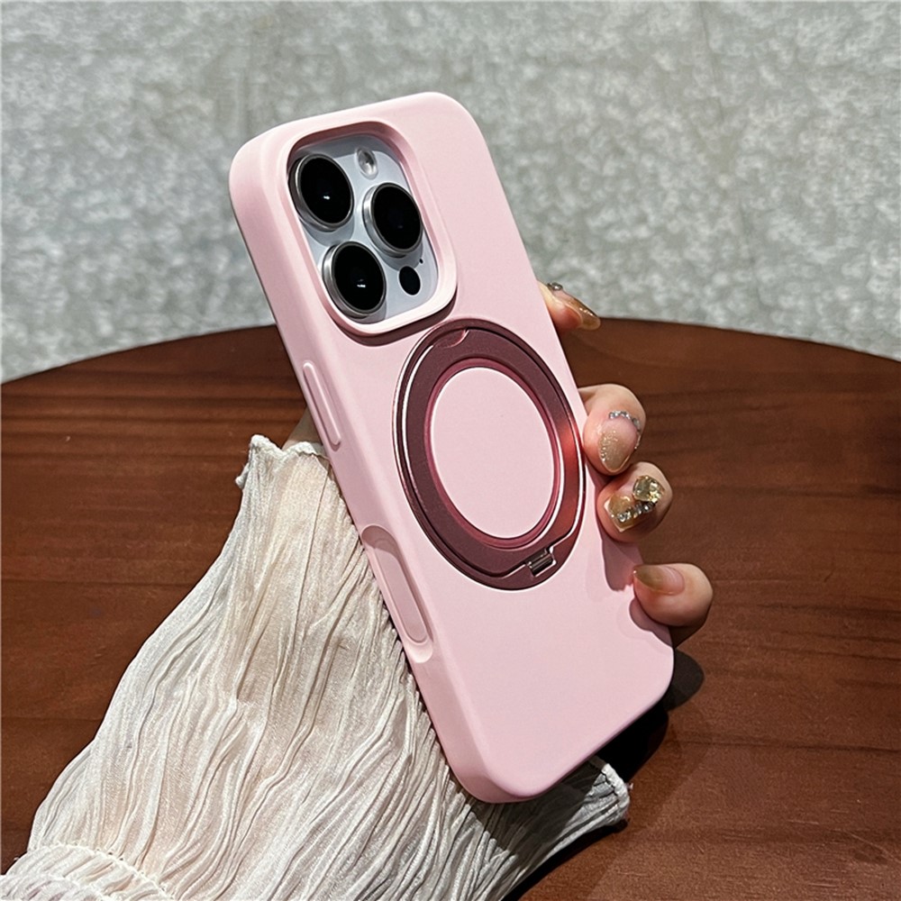 - 360° Rotating Ring Kickstand Integrated metal ring kickstand rotates freely and lays completely flush with the case when unused. Offers a comfortable grip and supports hands-free viewing in both portrait and landscape modes