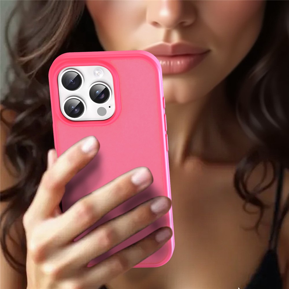 • For iPhone 16 Pro Max Case Skin Touch Matte Anti Drop TPU PC Phone Back Cover - Pink
