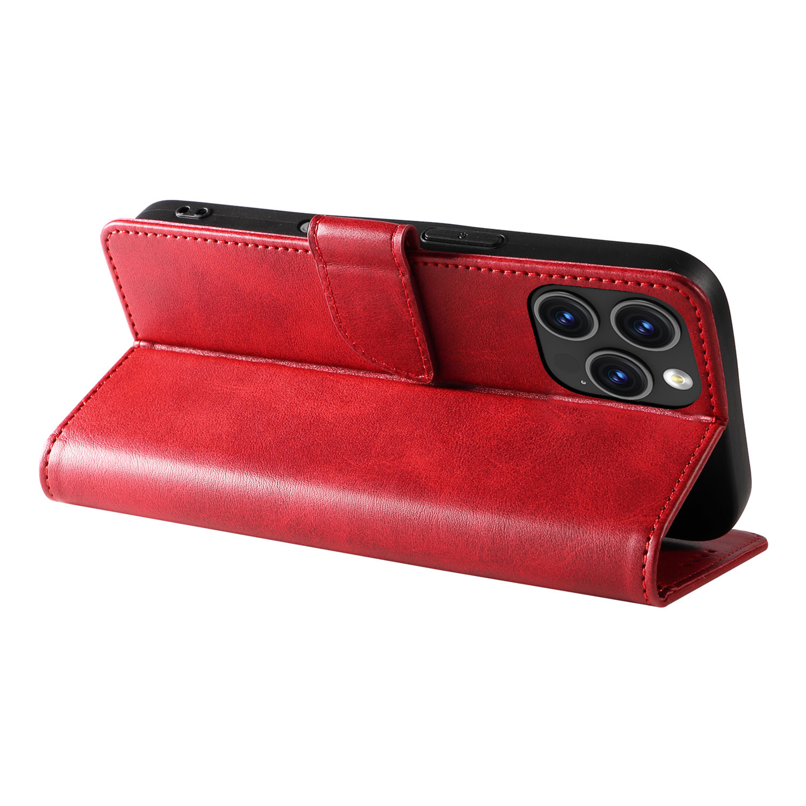 For iPhone 16 Pro Max Case with 2Pcs Tempered Glass WANLONFENG WN Series Calf Texture Leather Phone Cover Big Cutouts - Red $17.00