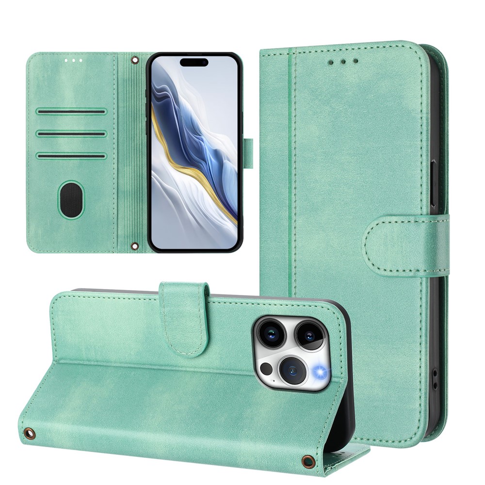 For iPhone 16 Pro Max Cases Wallet Stand Retro Texture Leather Phone Cover with Lanyard – Mint Green