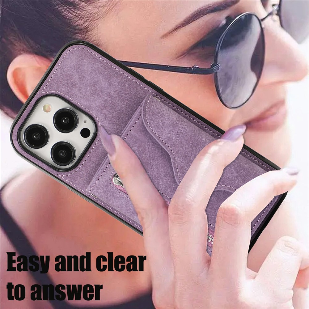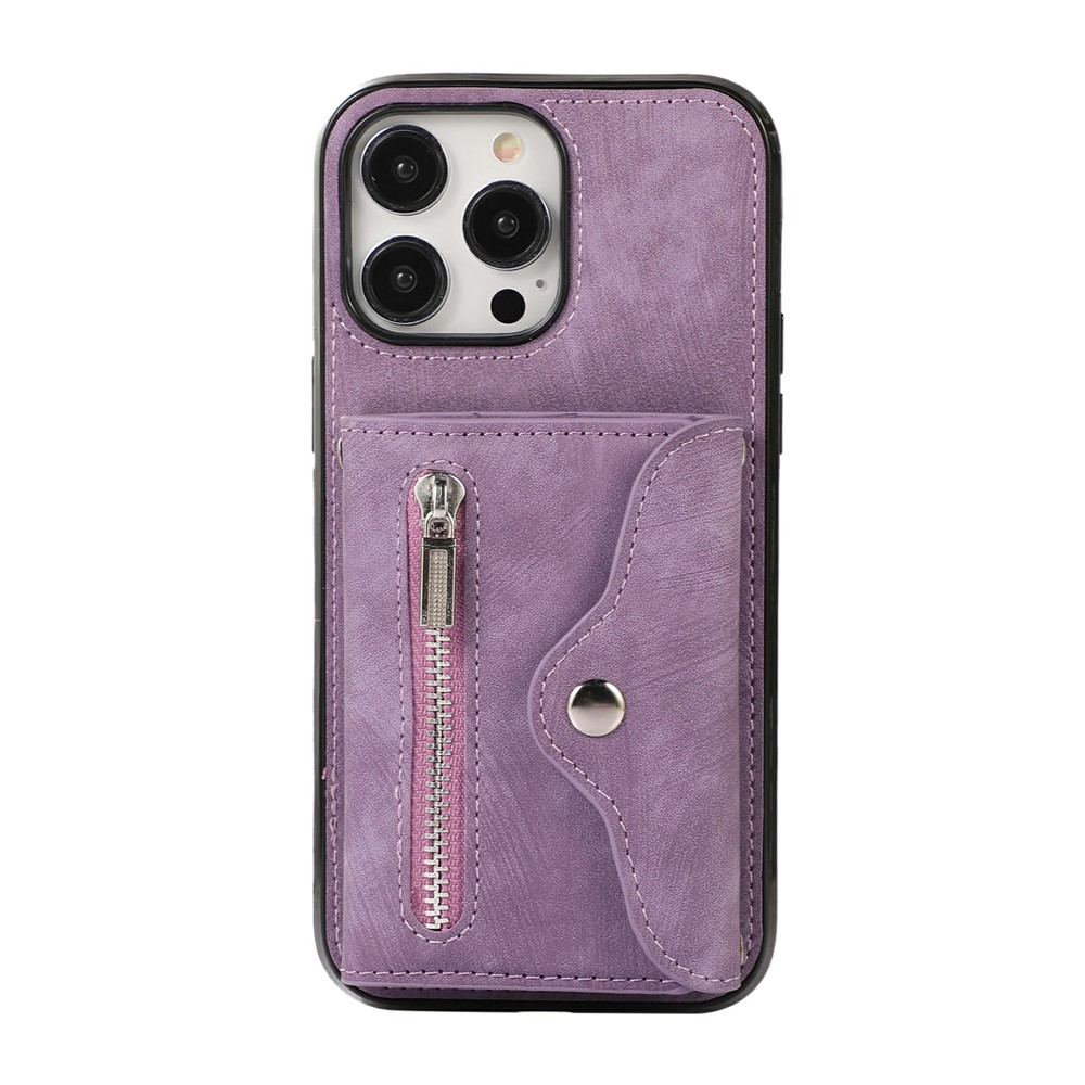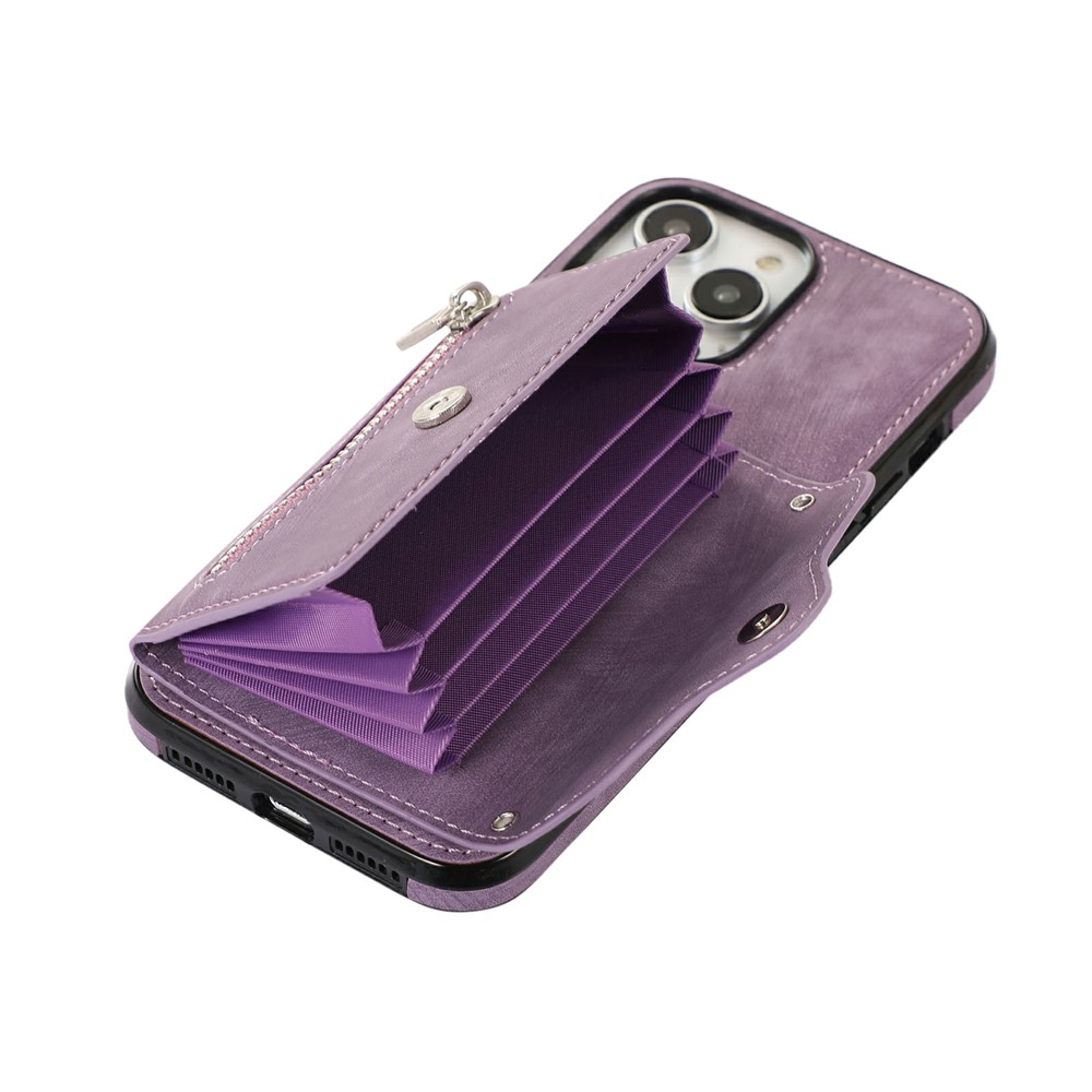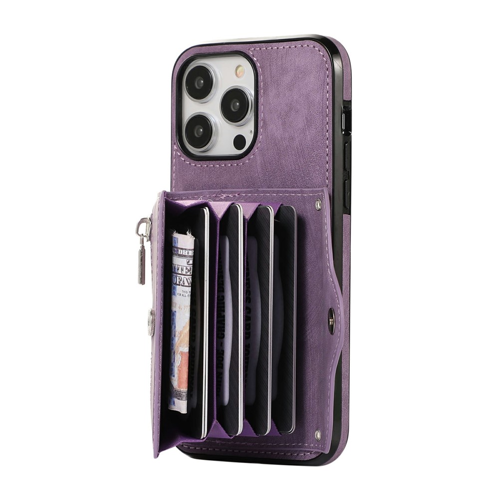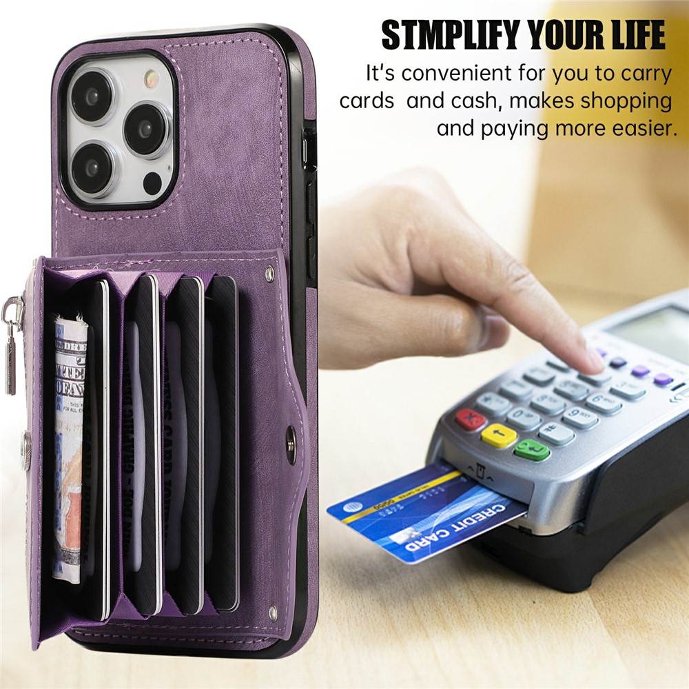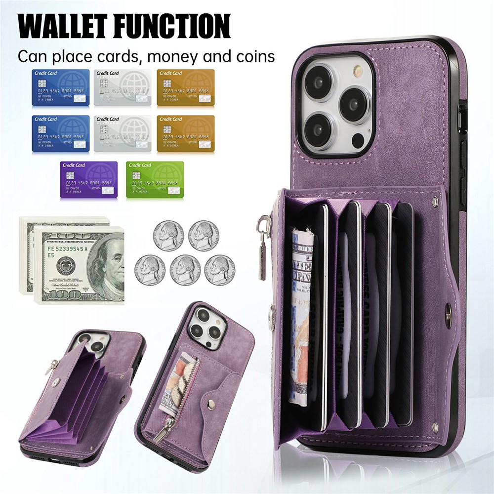 - Card Holder Design Features a multi-slot accordion-style card holder with a zipper and snap button closure, providing organized storage for cards, cash, and coins