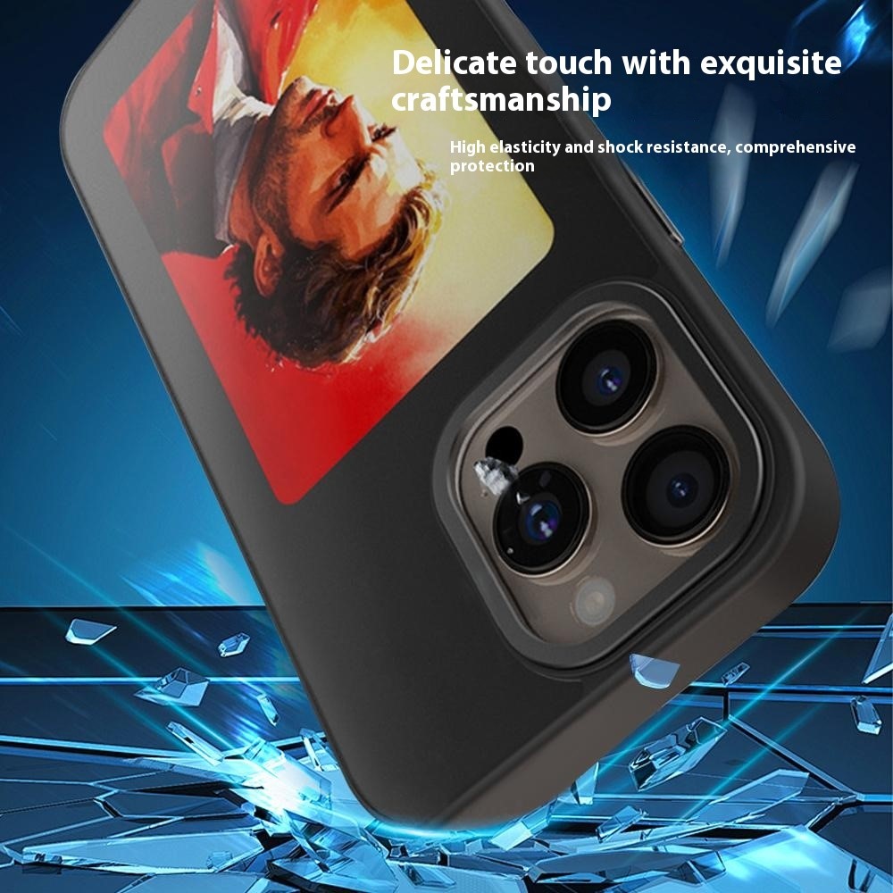 • For iPhone 16 Pro Max E-Ink Case 4 inch HD 4 Colors NFC Smart Display Phone Cover - Black