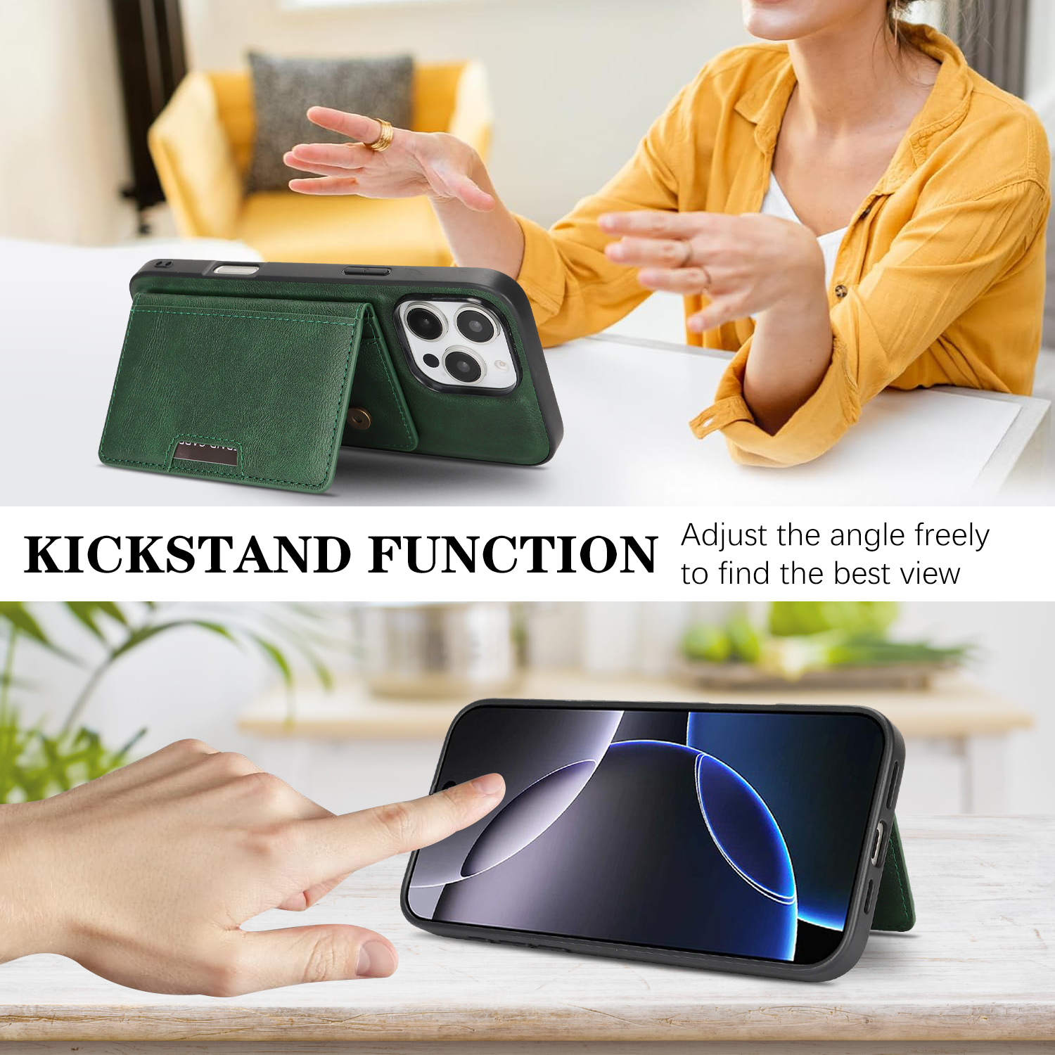 - MagSafe Compatible Supports for MagSafe accessories and wireless charging, featuring a minimalist magnetic leather bi-fold design with card holder functionality.