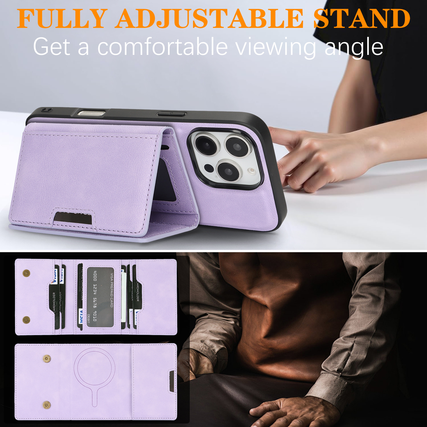 - MagSafe Compatible Supports for MagSafe accessories and wireless charging, featuring a minimalist magnetic leather bi-fold design with card holder functionality.