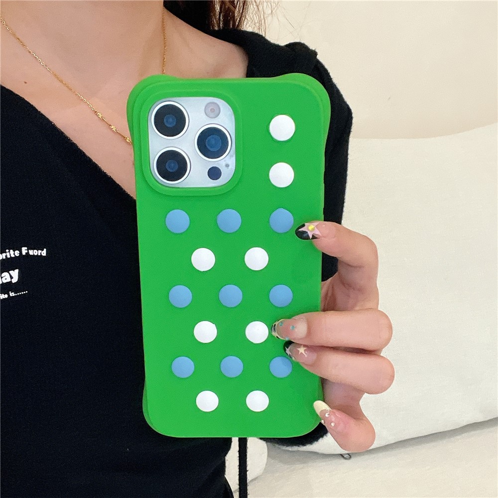 • For iPhone 16 Pro Max Liquid Silicone Case Hollow Out Phone Cover with DIY Mixed Dots - Green