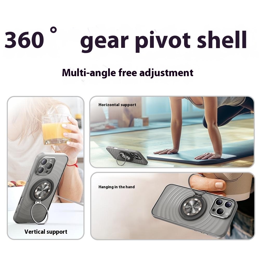 - 360° Rotating Gear Kickstand Equipped with a built-in gear-style ring bracket that rotates 360°, supporting vertical and horizontal positioning for hands-free viewing