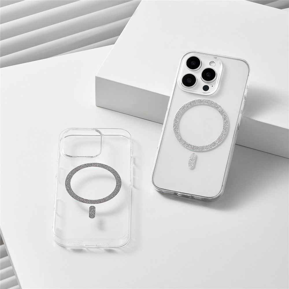 - Glitter Magnetic Ring Accent Features a stylish glitter finish exclusively on the magnetic ring, adding a subtle sparkle without overwhelming the clear look