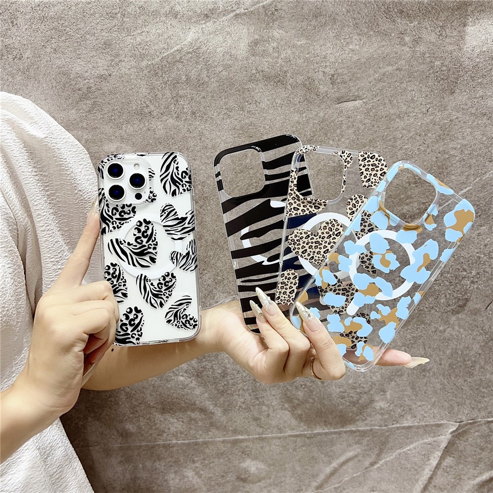 For iPhone 16 Pro Max Magnetic Case Hollow Leopard Print Design TPU PC Phone Back Cover – Style 7