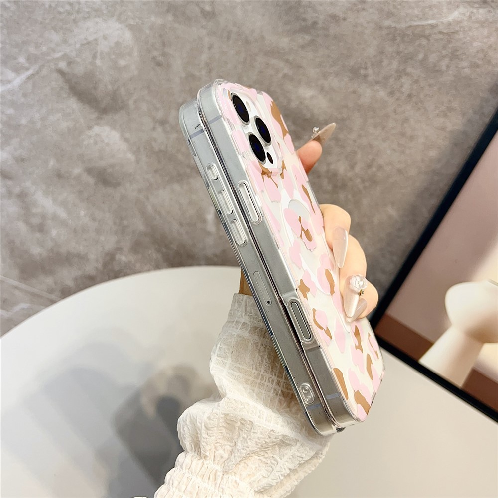 • For iPhone 16 Pro Max Magnetic Case Hollow Leopard Print Design TPU PC Phone Back Cover - Style 5