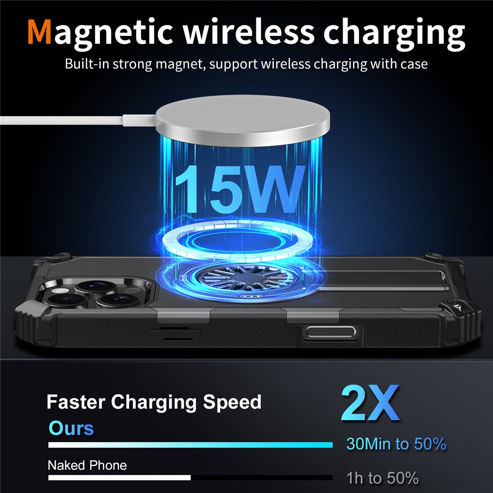 - Magnetic Wireless Charging Supports fast wireless charging with built-in strong magnets, compatible with MagSafe chargers and magnetic car mounts