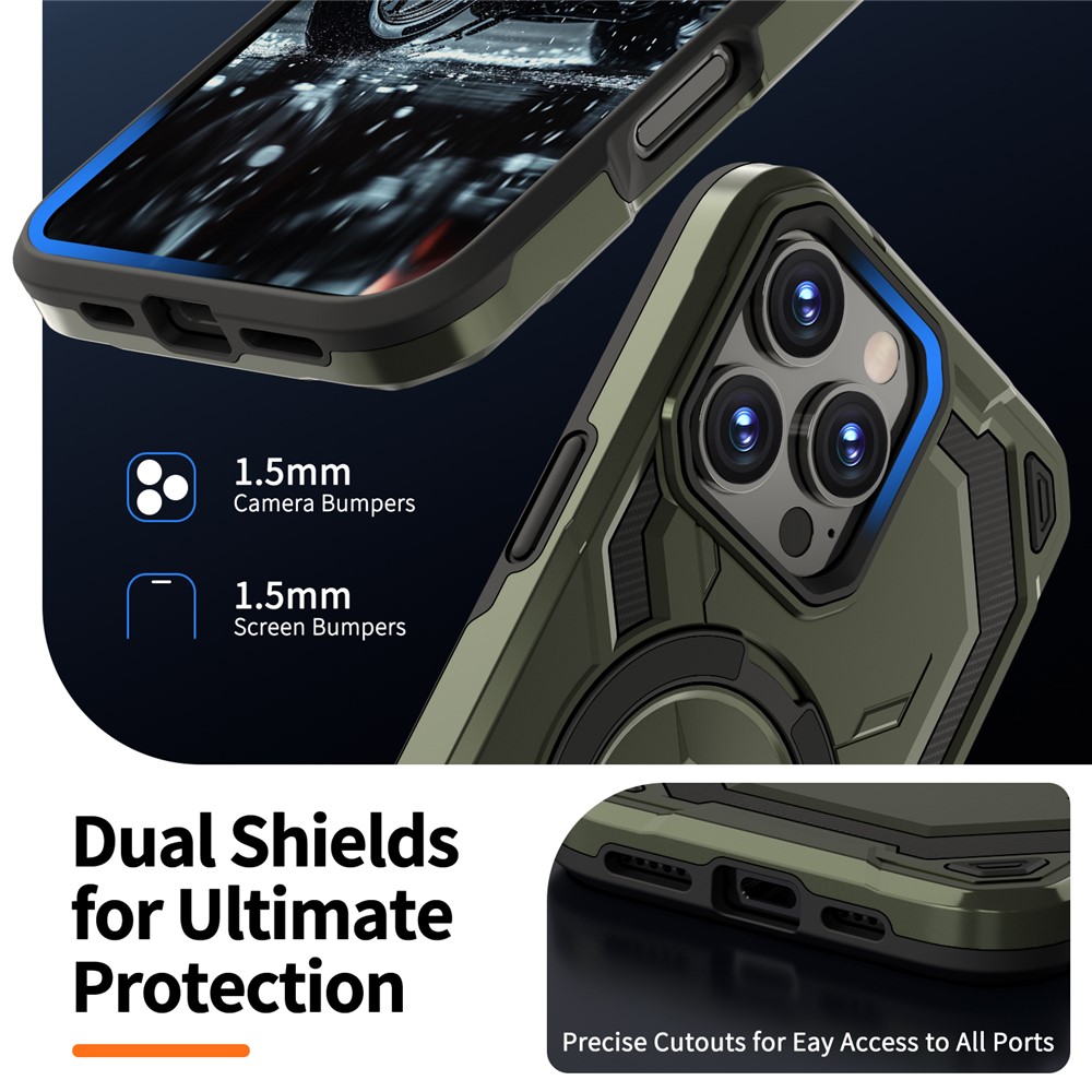 - Magnetic Ring Kickstand Features a magnetic ring kickstand for easy one-handed operation and doubles as a convenient phone kickstand for desktop or in-car use, enhancing versatility.