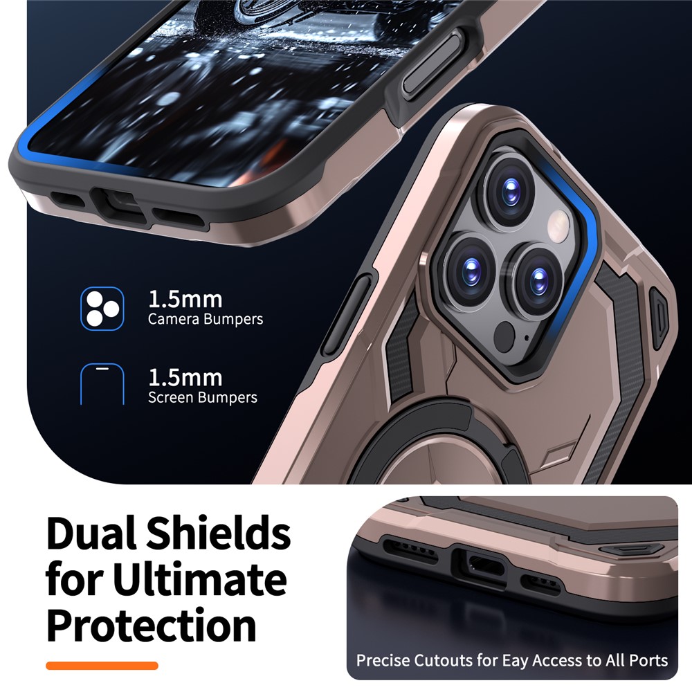 - Magnetic Ring Kickstand Features a magnetic ring kickstand for easy one-handed operation and doubles as a convenient phone kickstand for desktop or in-car use, enhancing versatility.