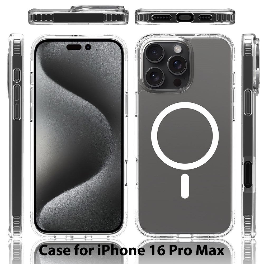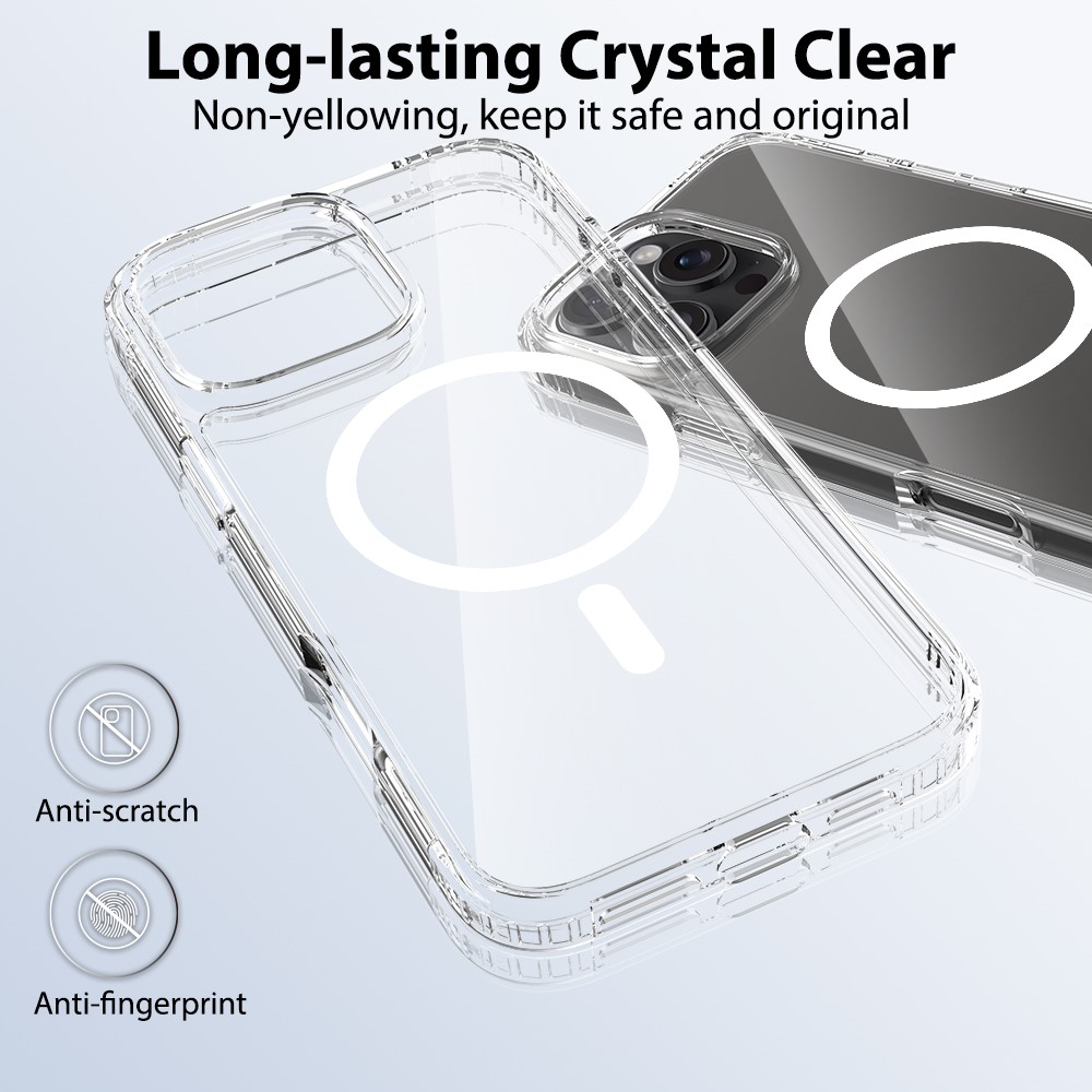For iPhone 16 Pro Max Magnetic Case Scratch-Resistant TPU + PC Crystal Clear Phone Cover