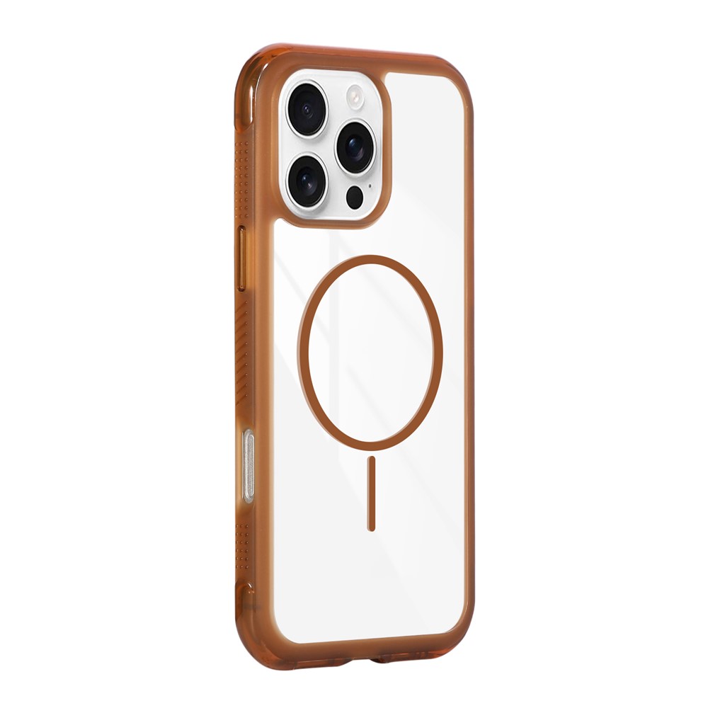 For iPhone 16 Pro Max Magnetic Case TPU + PC Crystal Clear Phone Cover – Brown