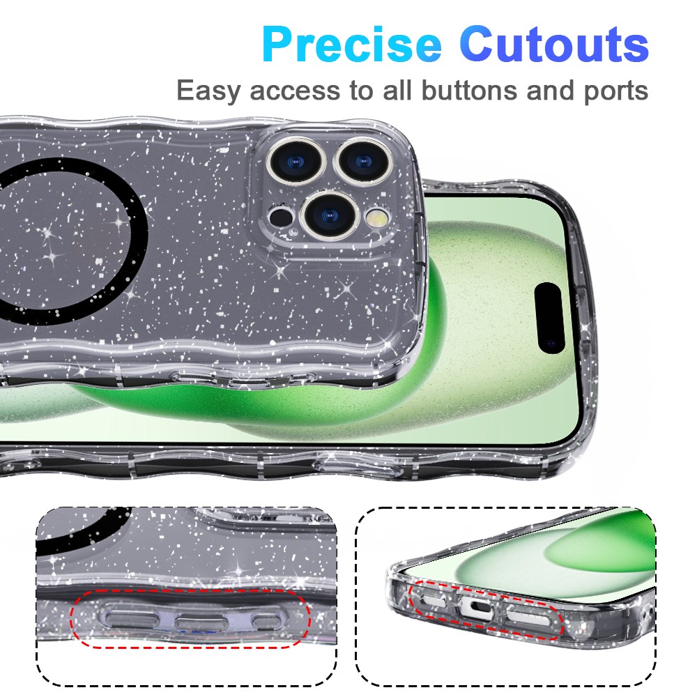 - Wave Edge Glitter Design Features a stylish wave-shaped frame with embedded glitter or vibrant patterns, adding a fashionable and eye-catching touch to your phone