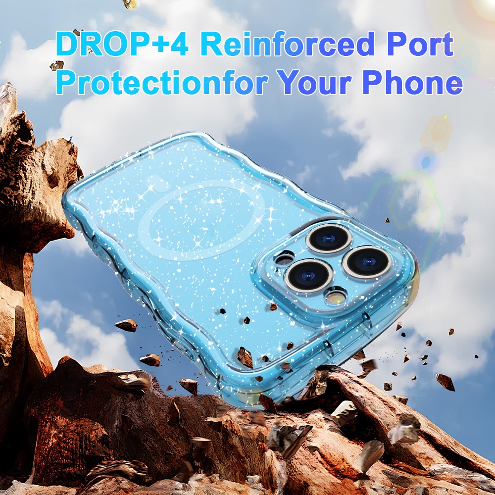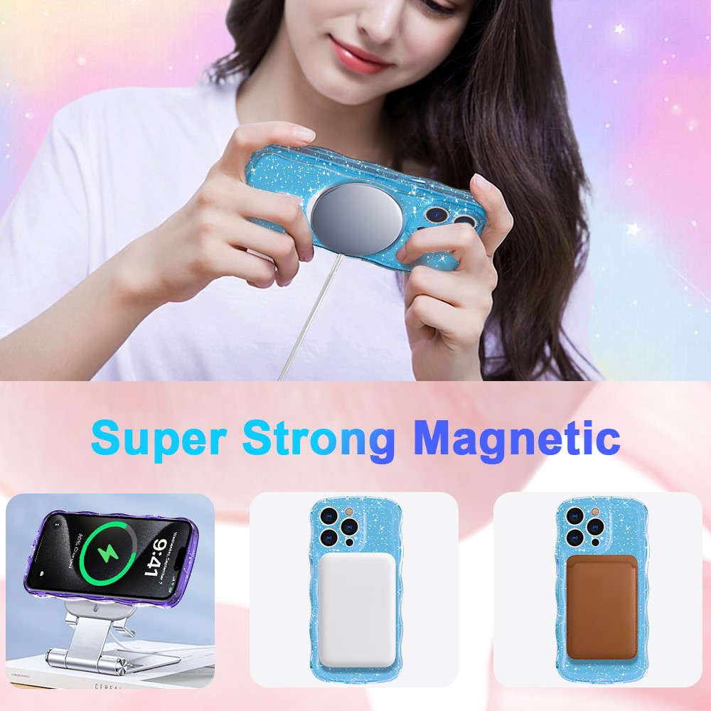 - Wave Edge Glitter Design Features a stylish wave-shaped frame with embedded glitter or vibrant patterns, adding a fashionable and eye-catching touch to your phone