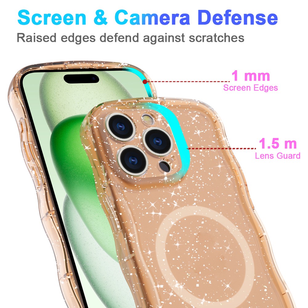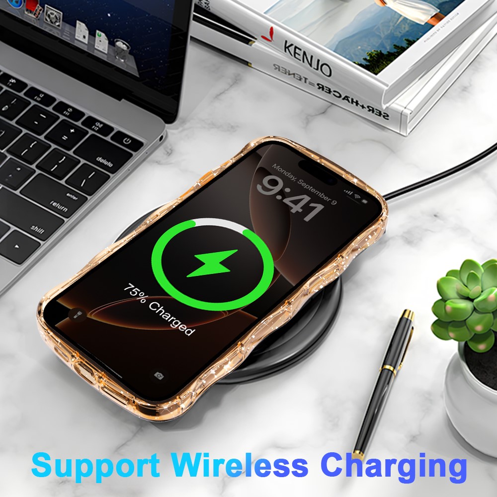 - Wave Edge Glitter Design Features a stylish wave-shaped frame with embedded glitter or vibrant patterns, adding a fashionable and eye-catching touch to your phone