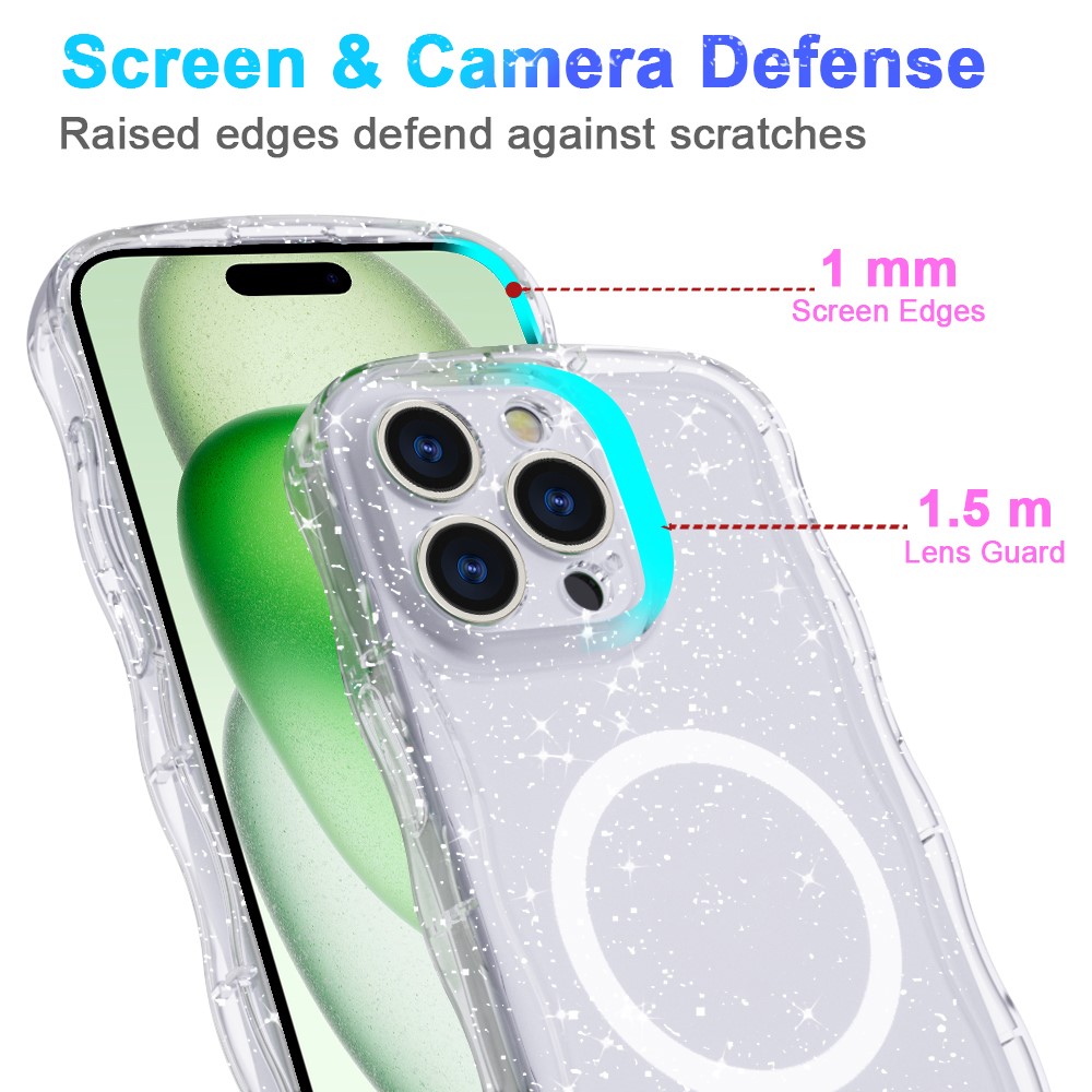 - Wave Edge Glitter Design Features a stylish wave-shaped frame with embedded glitter or vibrant patterns, adding a fashionable and eye-catching touch to your phone