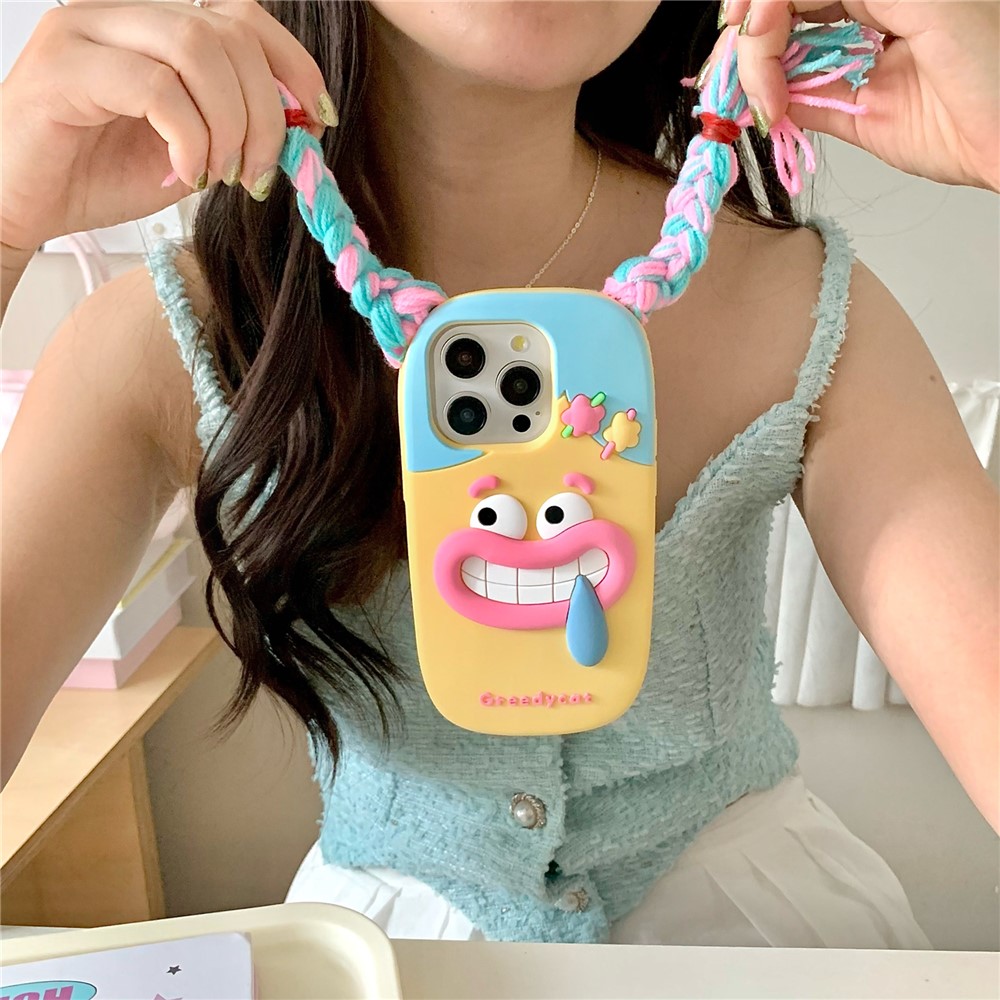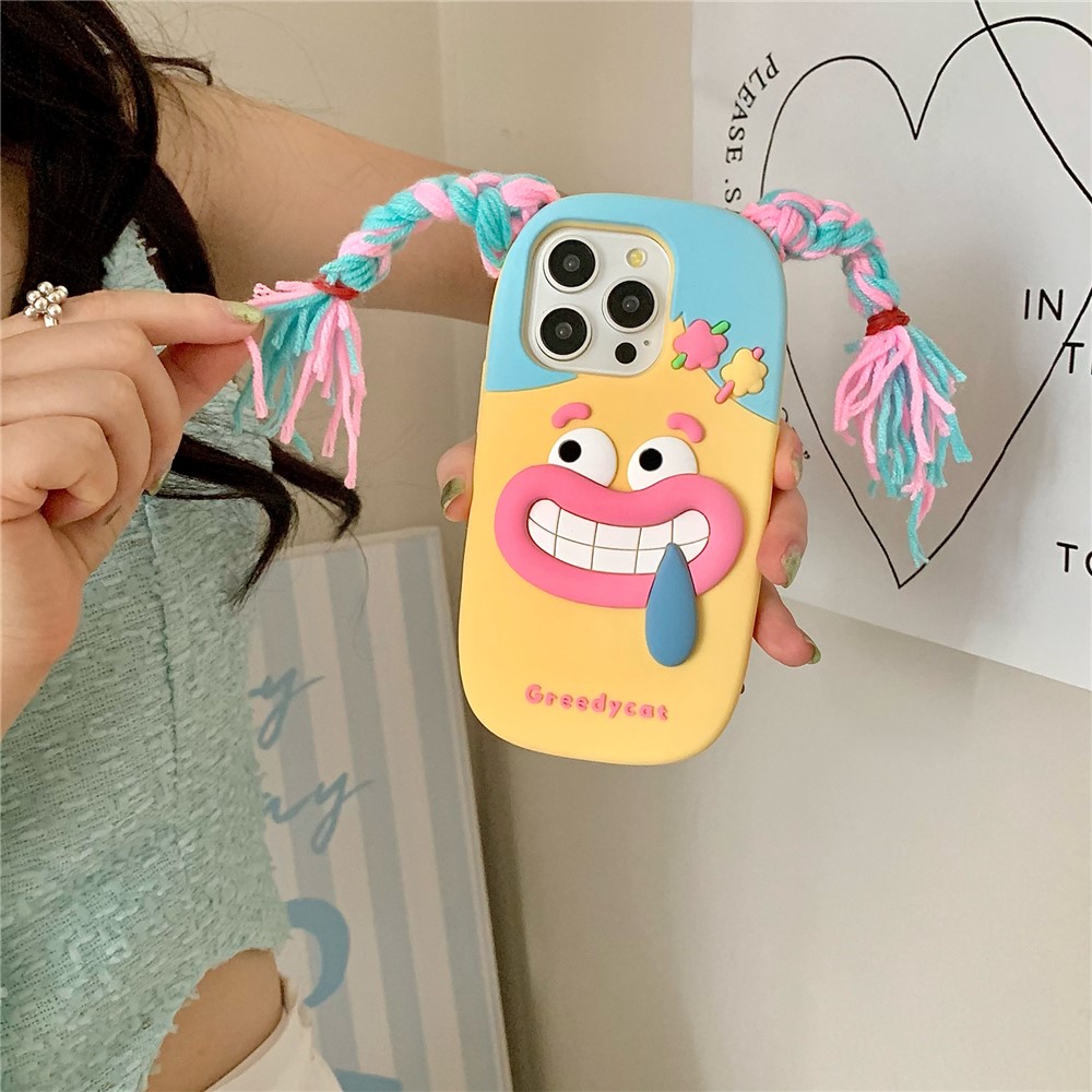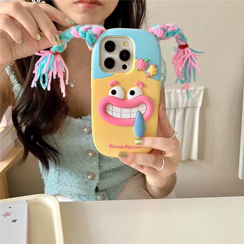 For iPhone 16 Pro Max Silicone Case Cute Colorful Braids Girl Design Shockproof Phone Back Cover