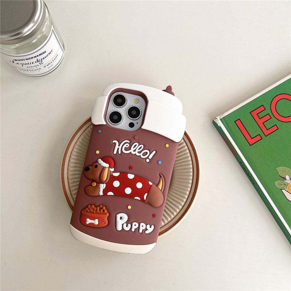 For iPhone 16 Pro Max Silicone Case Cute Dachshund Coffee Cup Design Shockproof Phone Back Cover